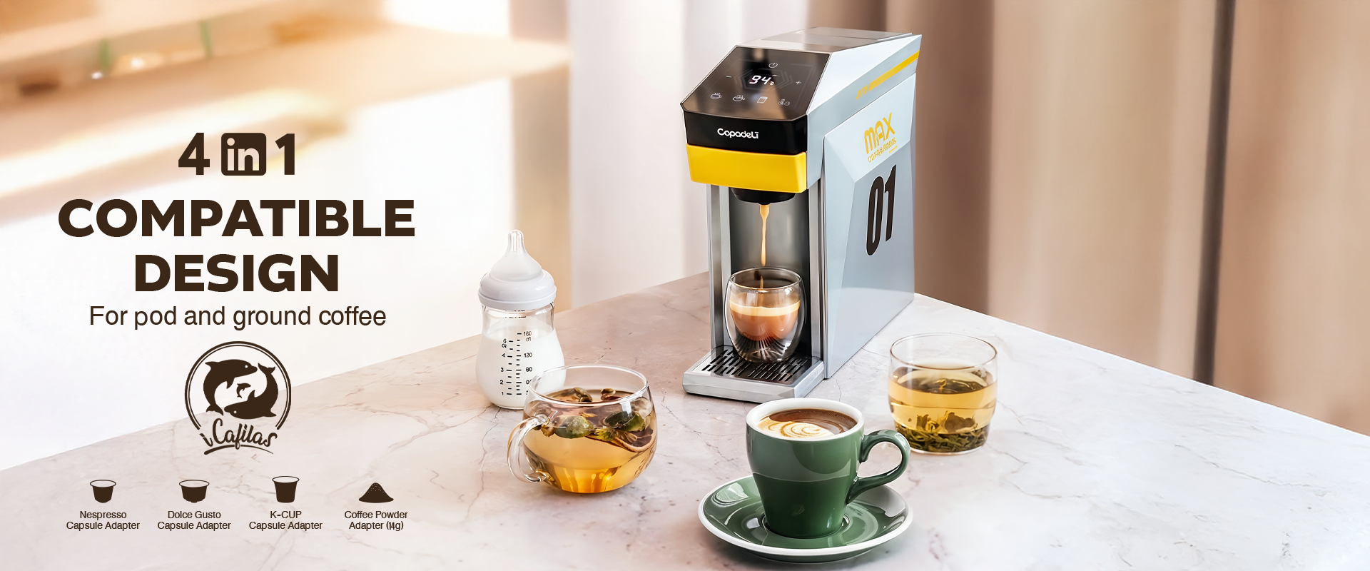 iCafilas 2-in-1 Portable Espresso Maker with Heating - Brown
