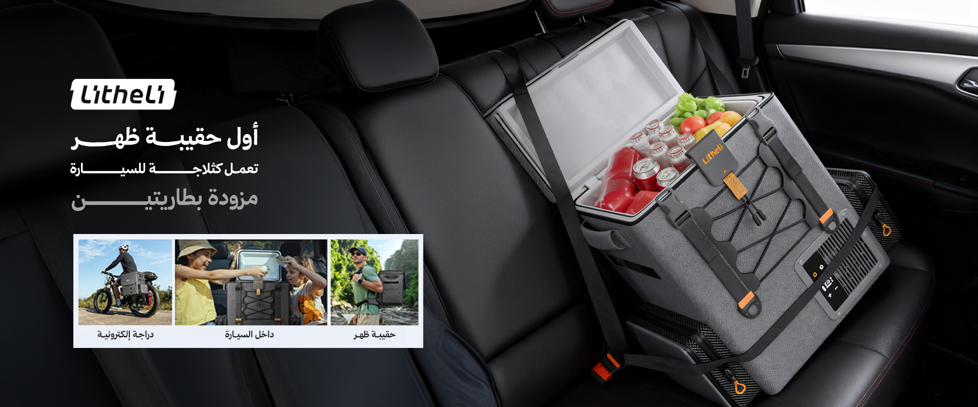 ليثيلي فروزن باك وايلد 12 فولت ثلاجة محمولة ذكية للسيارة 16 لتر + 4 لتر ببطاريتين - رمادي