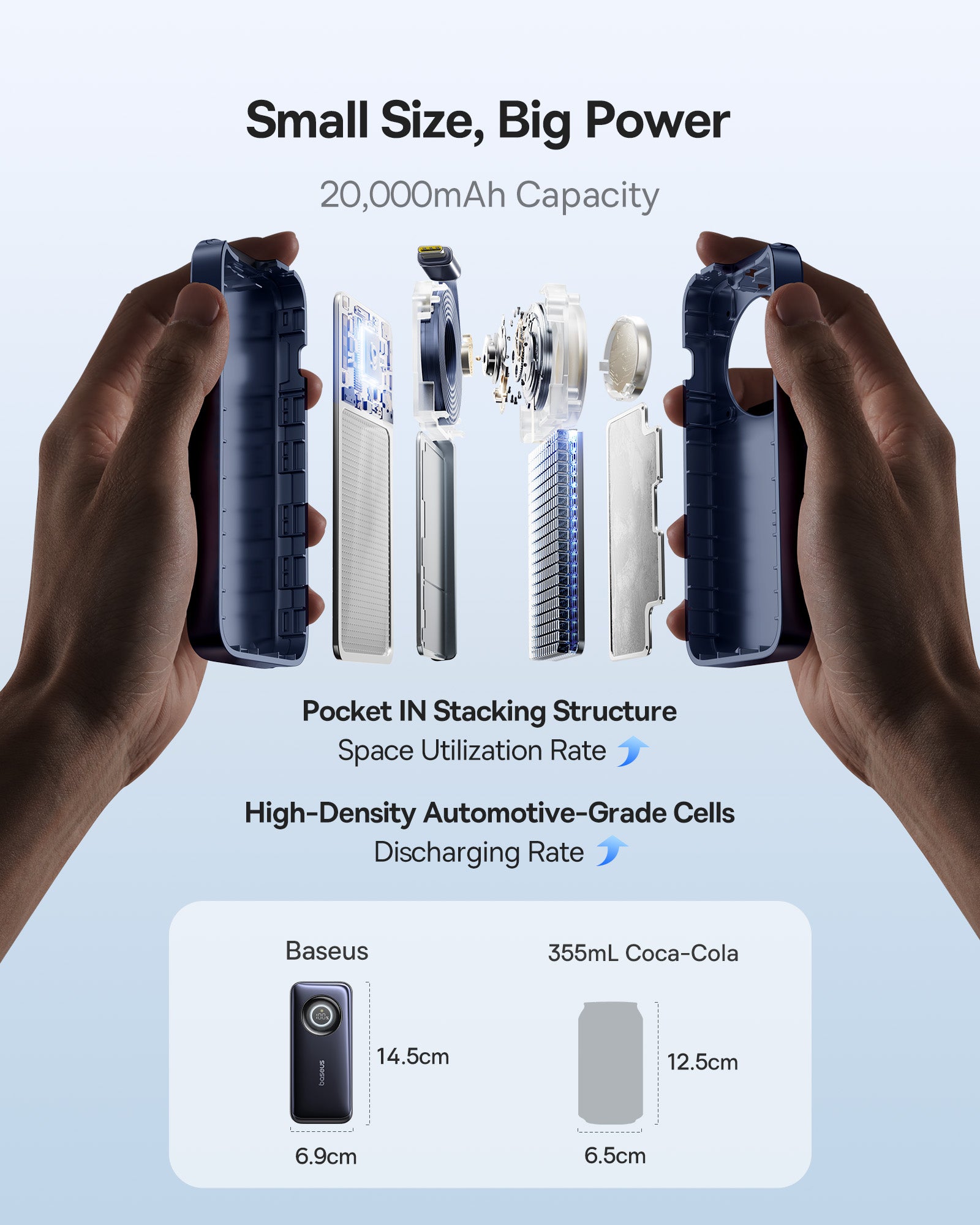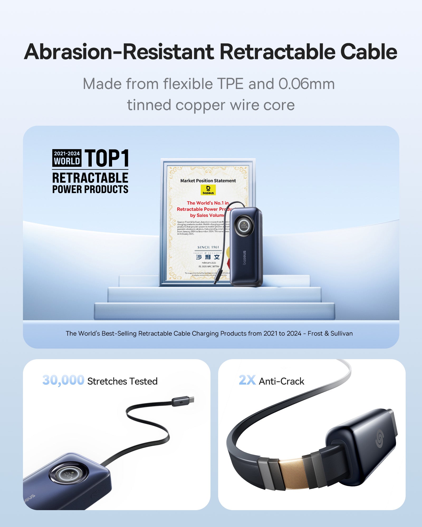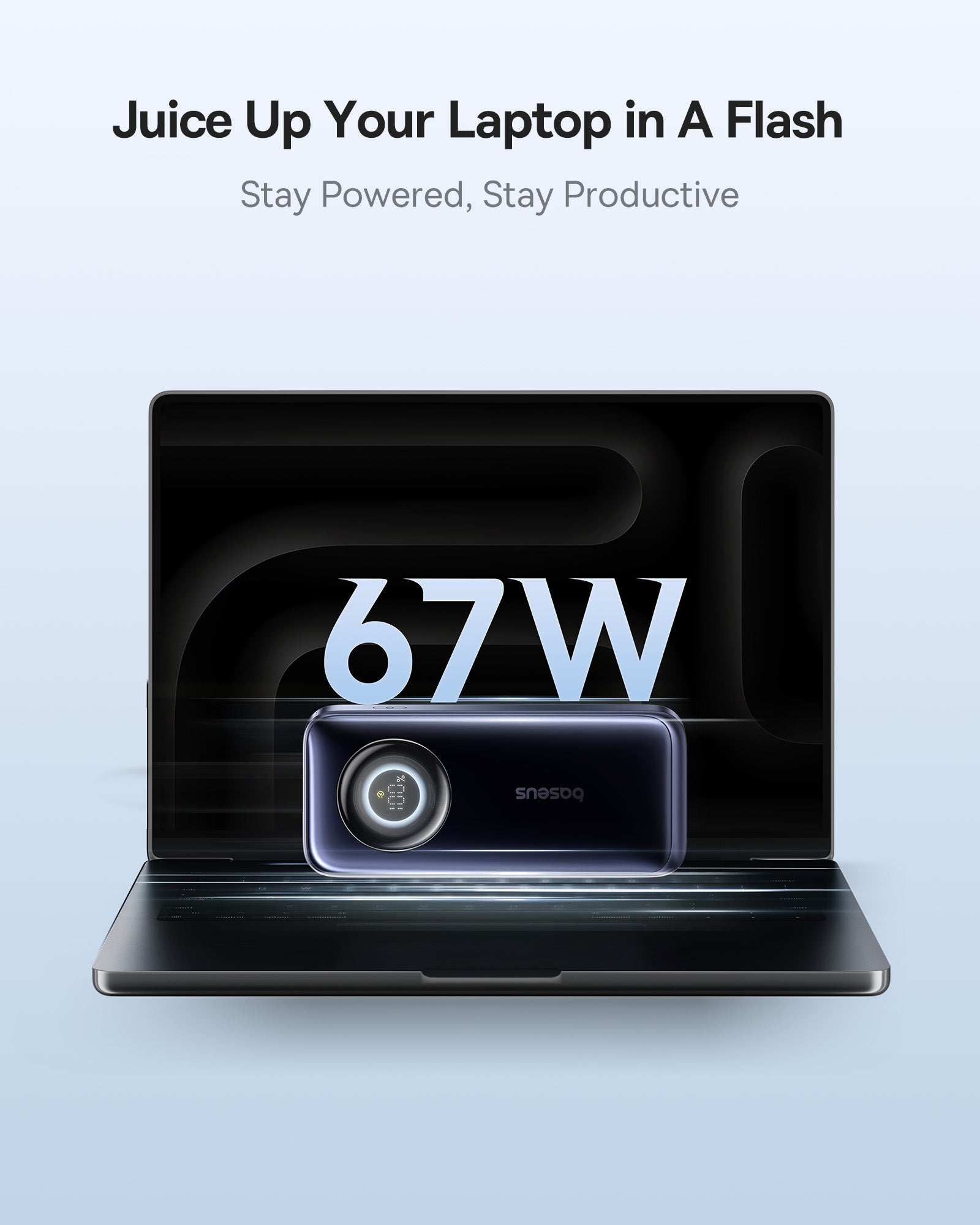 بنك الطاقة Baseus EnerCore CR11 بقلم كهربائي قابل للسحب سعة 20000 مللي أمبير في الساعة بقوة 67 واط هو رفيقك المثالي للشحن السريع بقوة 67 واط! شحن جهاز MacBook Air بنسبة 50% في 30 دقيقة، واستمتع بقوة 20000 مللي أمبير في الساعة تكفي لشحن الهاتف 3-4 مرات، وحافظ على نظافة المكان مع كابل قابل للسحب بطول 2.3 قدم. آمن، ذكي، وجاهز للسفر - احصل على واحد الآن!