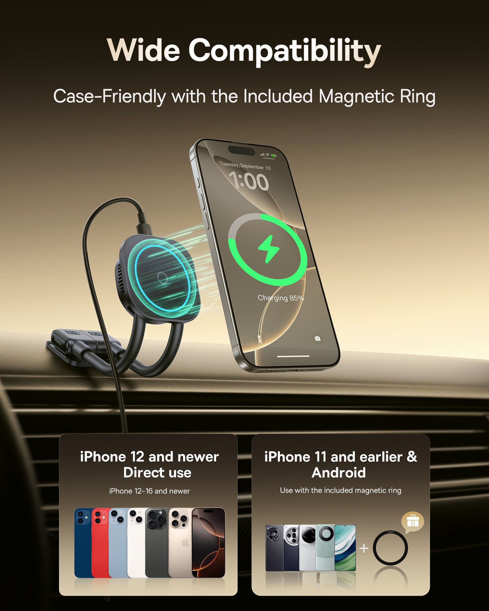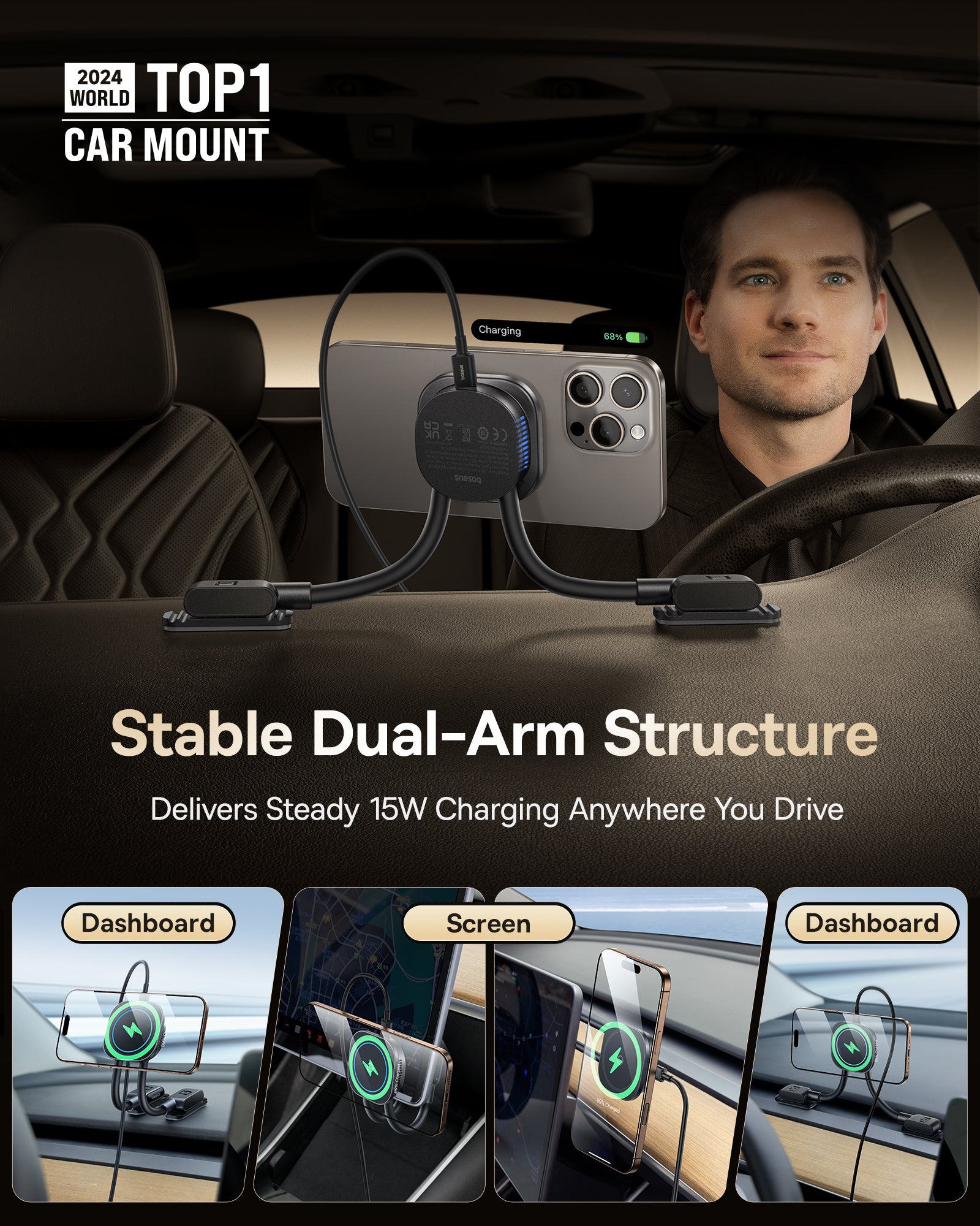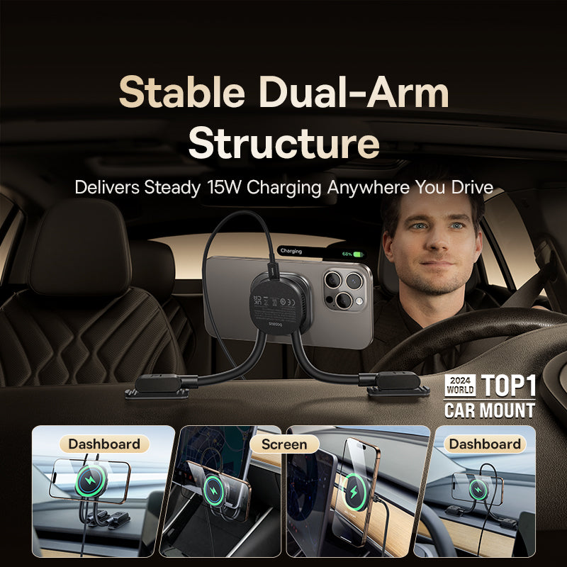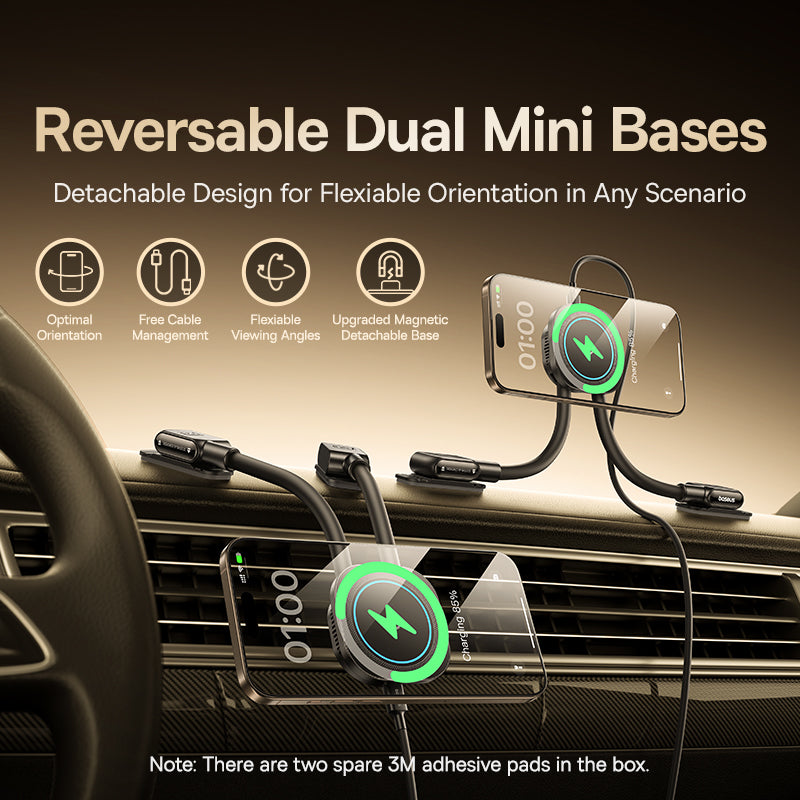 اشحن جهازك وتصفح بسهولة أثناء القيادة مع حامل Baseus PrimeTrip C03sPro المغناطيسي. يتميز هذا الحامل بتكنولوجيا الشحن السريع اللاسلكي بقوة 15 واط، ومتوافق مع تقنية MagSafe، وقبضة مغناطيسية قوية لتثبيت آمن حتى على الطرق الوعرة. تتيح زاوية العرض القابلة للتعديل بزاوية 360 درجة وضع جهاز iPhone الخاص بك بالطريقة التي تريدها بالضبط، بينما يمتزج التصميم العملي والعصري بسلاسة مع داخل سيارتك.