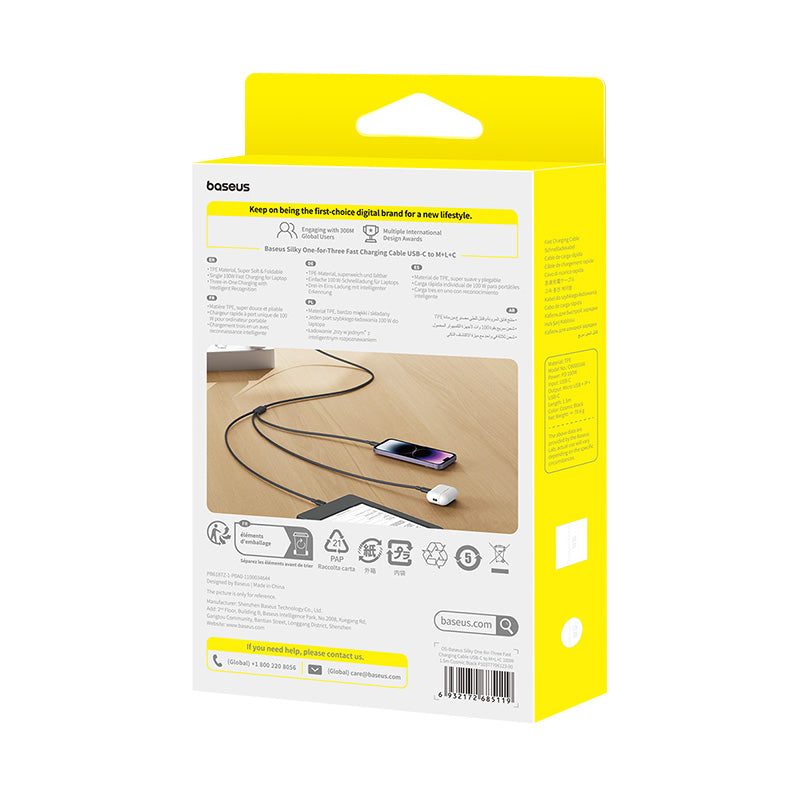 يُعد كابل الشحن السريع Baseus Silky One-for-Three الحل الأمثل لشحن أجهزة متعددة باستخدام كابل واحد فقط. تم تصميم هذا الكابل المتعدد الاستخدامات مع موصلات USB-C إلى Micro USB و Lightning و Type-C، مما يضمن توافقه مع مجموعة واسعة من الأجهزة. سواء كنت بحاجة إلى شحن جهاز iPhone أو جهاز Android أو جهاز كمبيوتر محمول من النوع USB-C، فإن كابل Baseus Silky One-for-Three يمكنه التعامل مع كل ذلك، مما يوفر راحة وكفاءة لا مثيل لهما.