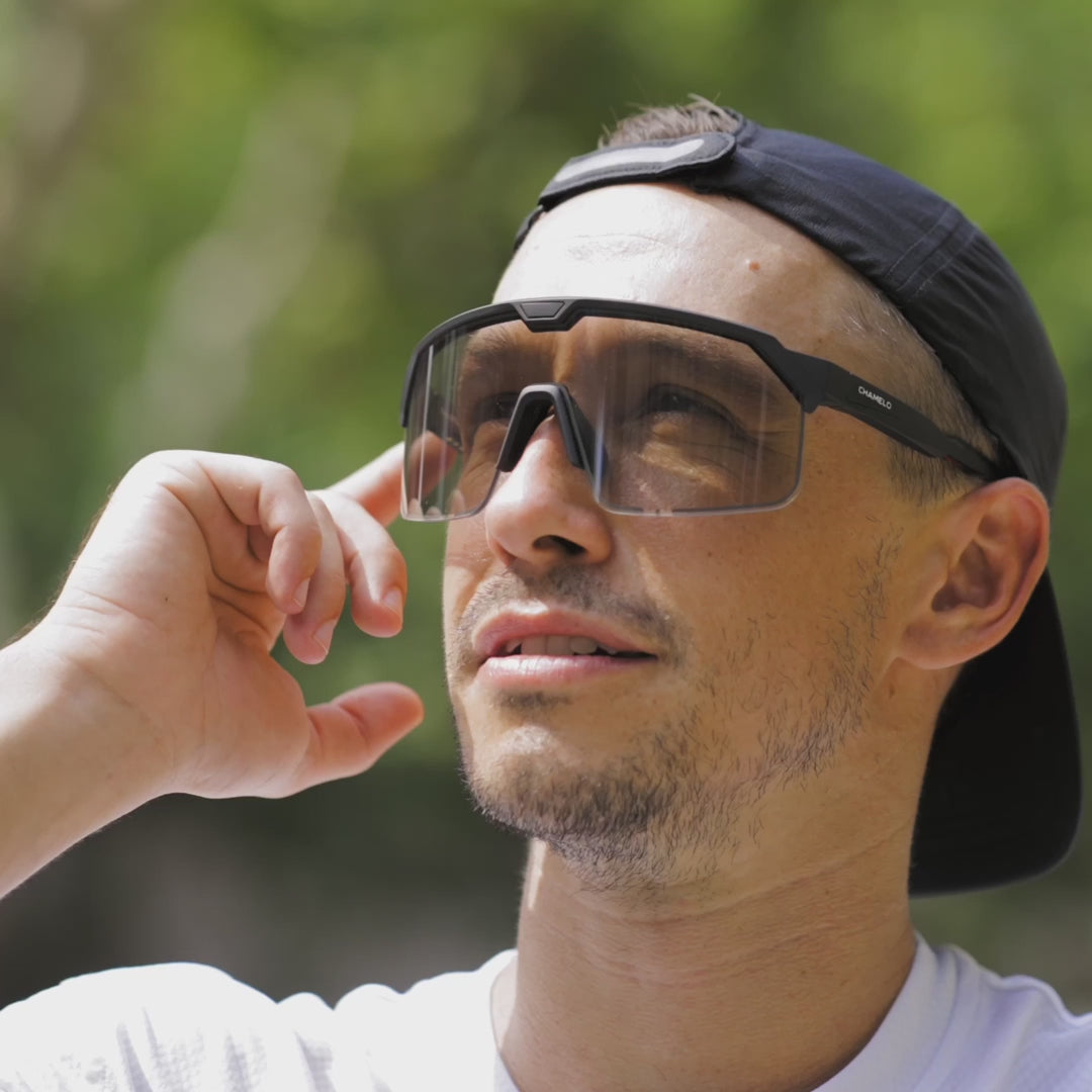 نظارات شمسية رياضية قابلة للتعديل لدرجة الظل، تجمع بين الأداء المتميز وتقنية الظل المزدوجة من الجيل التالي من Chamelo. انزلق لتعديل درجة الظل أو قم بالتبديل إلى وضع التشغيل التلقائي للتكيف السلس، مما يوفر نسبة انتقال ضوء مرئي تتراوح بين 54-17% للحصول على وضوح فائق في أي ضوء.