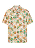 هذه القميص المصنوع من مزيج القطن والكتان ذو الأكمام القصيرة مطبوع بنقشة "Jeu de Cartes". يتميز برقبة مفتوحة وحافة منحنية وخمسة أزرار أمامية محفورة.