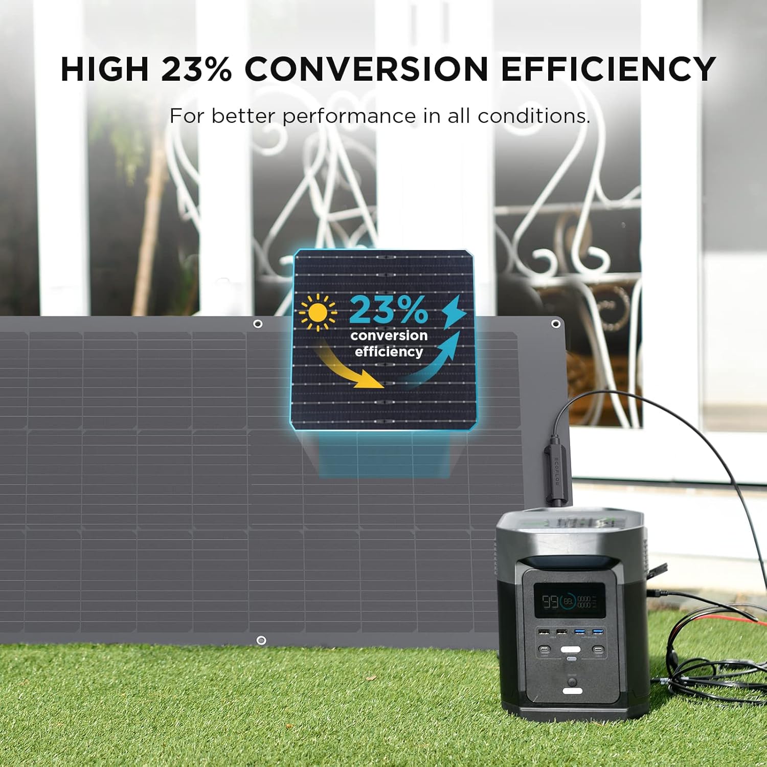 بفضل موصل الطاقة الشمسية الشامل، يمكن استخدام لوحتنا الشمسية المرنة بقدرة 100 واط حتى مع نظام الطاقة الحالي الخاص بك بقدرة 48 فولت أو محطة الطاقة المحمولة. تتضمن هذه اللوحة كابل طاقة شمسية بطول 3.3 قدم يمنحك مساحة واسعة لتثبيت ألواح متعددة، مما يزيد من الطاقة الشمسية المُدخلة.