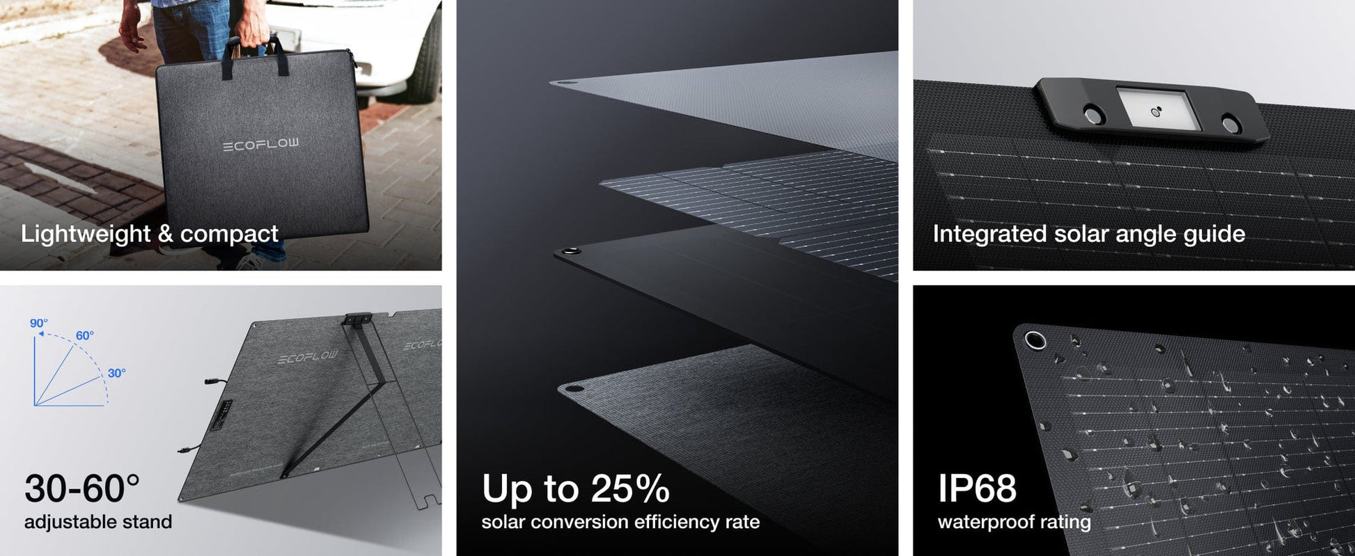 بفضل استخدام تقنية TOPCon للطاقة الشمسية لأول مرة في صناعة الألواح الشمسية المحمولة، فقد رفعنا مستوى كفاءة التحويل، ليصل إلى 25%. شحن أسرع مع لوح أكثر إحكاما.