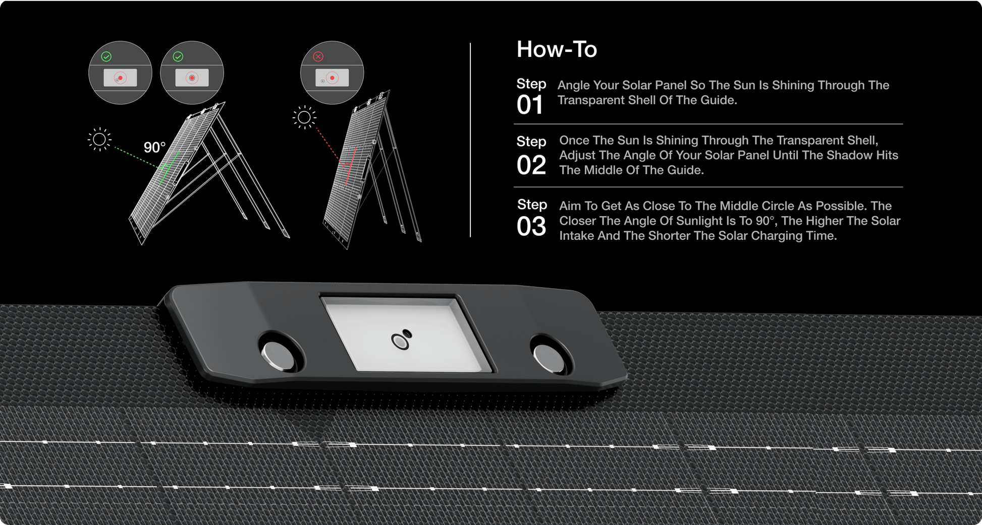 يحافظ على ضوء الشمس بزاوية 90 درجة على سطح لوحتك الشمسية لالتقاط أكبر قدر ممكن من الطاقة.