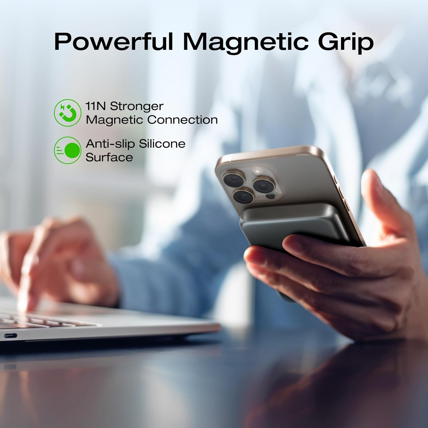 شحن لاسلكي Qi2 بقوة 15 واط: استمتع بسهولة الشحن اللاسلكي بقوة 15 واط، وهو أسرع مرتين من شحن Qi1 بقوة 7.5 واط، ومدعومًا بشهادة Qi2، مما يضمن تعبئة سريعة وآمنة وفعالة للطاقة.