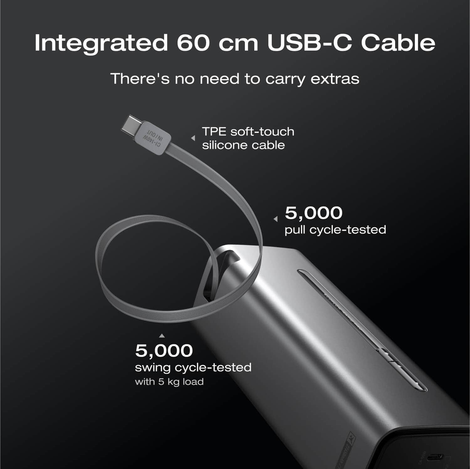 كابل مدمج مدمج بطول 60 سم: ليست هناك حاجة لحمل كابل إضافي. ما عليك سوى سحب الكابل والشحن.