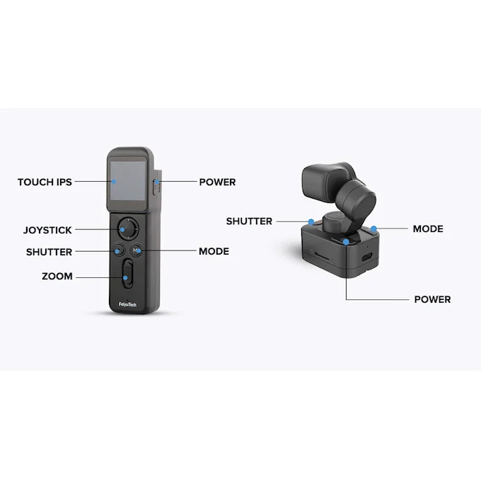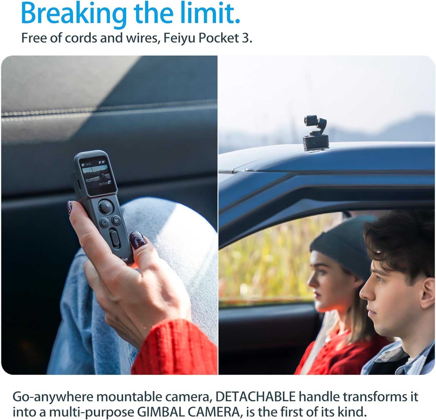 يتميز جهاز Feiyu Pocket 3 بتصميمه المبتكر الذي يدمج مقبضًا قابلًا للفصل. يمكن فصل كاميرا الجيمبال ومقبض التحكم عن بُعد والتحكم بهما بدون أسلاك، مما يسمح لك بإعداد مجموعة متنوعة من التركيبات للحصول على مزيد من المرونة.