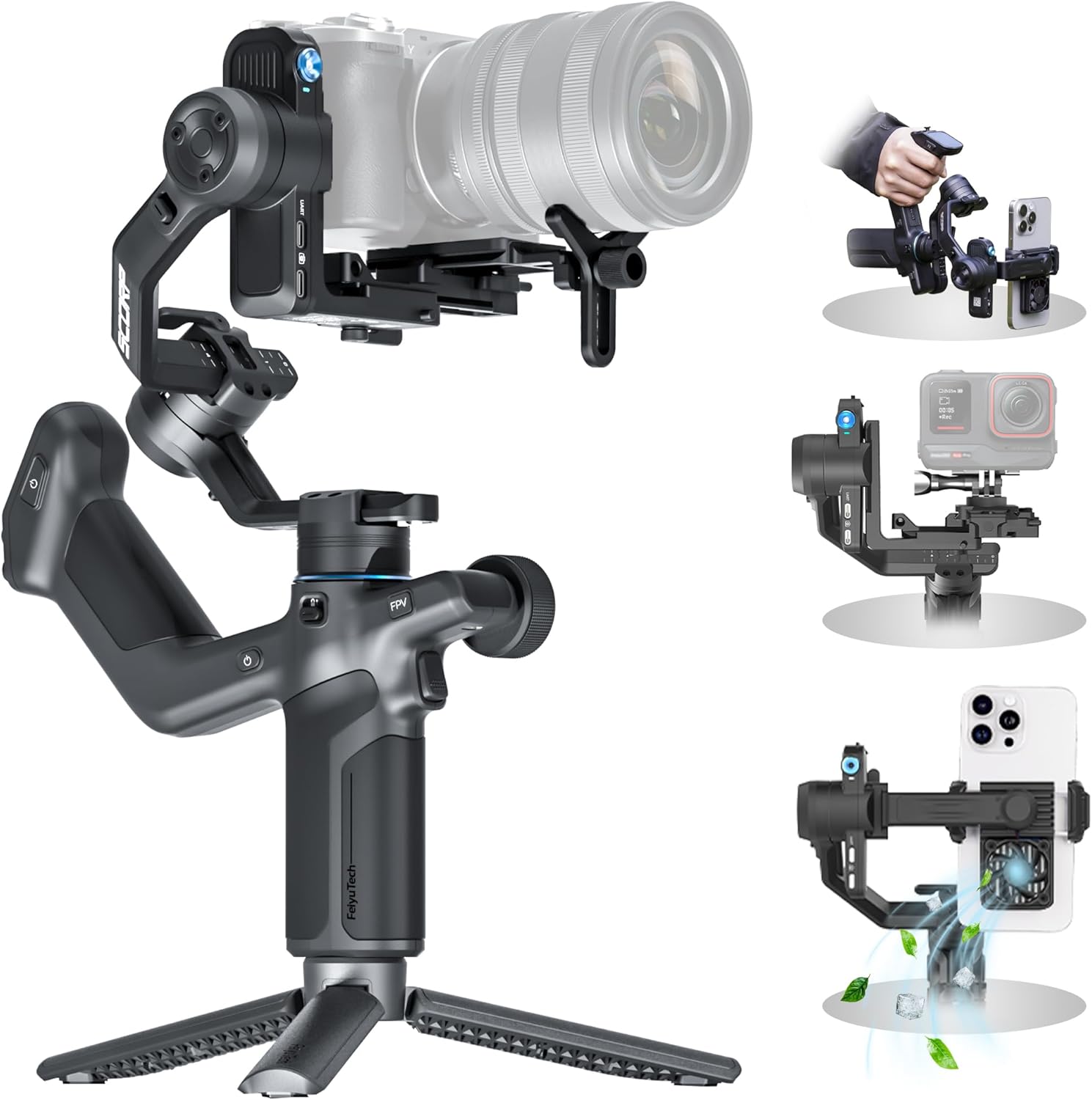 افتح قفل أوضاع التصوير المتقدمة مثل التصوير البانورامي والتصوير المتسلسل مع مسار الحركة والتصوير المتسلسل مع الحركة والدوران التلقائي باستخدام تطبيق "Feiyu SCORP" أو "Feiyu ON". سواء كنت تلتقط مناظر طبيعية واسعة أو حركة ديناميكية، فإن SCORP Mini 3 Pro يضع الإبداع الاحترافي في متناول يديك.