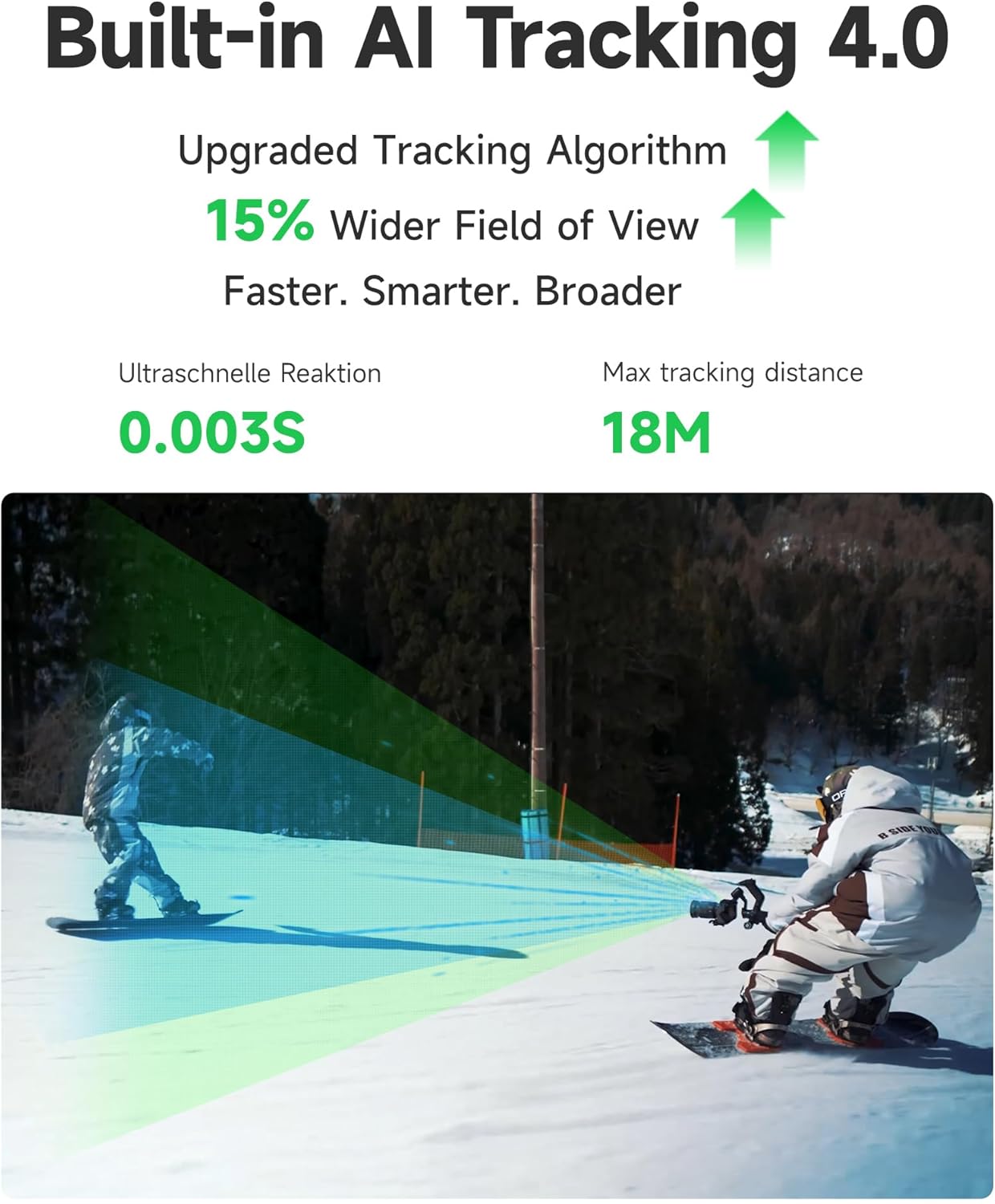 تتبع محسن بالذكاء الاصطناعي 4.0: مجال رؤية أوسع بنسبة 15%، وقت استجابة فائق السرعة 0.003 ثانية، يتابع حتى 18 مترًا، تحكم بإيماءات اليد.