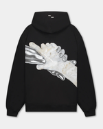 ارتقِ بملابسك غير الرسمية مع هوديي هاندشيك إلمنتس. مصنوع من 100% قطن عضوي، يتميز هذا الهوديي الأسود بشعار FP Pavilion على الصدر وتصميم فريد من نوعه لـ هاندشيك، مثالي لإحداث انطباع.