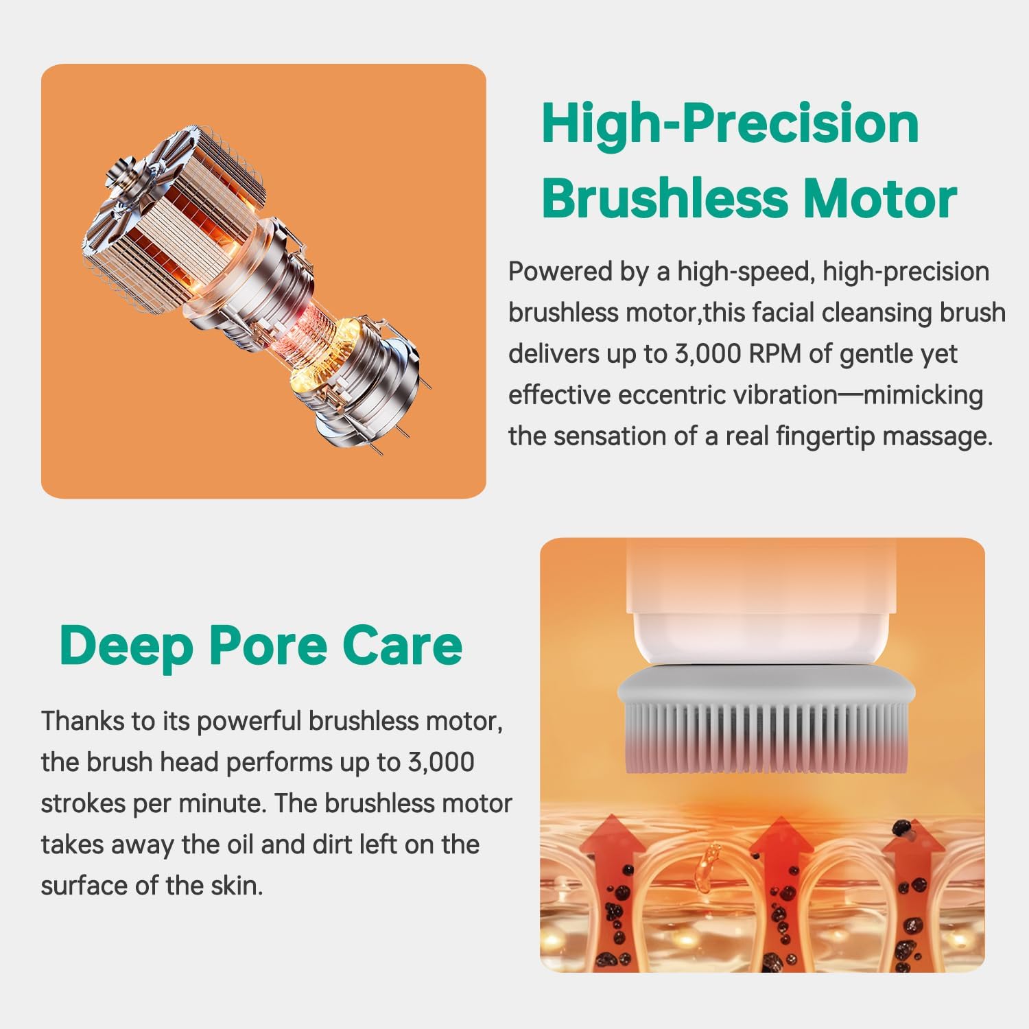 بفضل محرك بدون فرشاة عالي السرعة وعالي الدقة، توفر فرشاة تنظيف الوجه هذه ما يصل إلى 3000 دورة في الدقيقة من الاهتزازات اللامركزية اللطيفة والفعالة - محاكاة إحساس تدليك أطراف الأصابع الحقيقي.