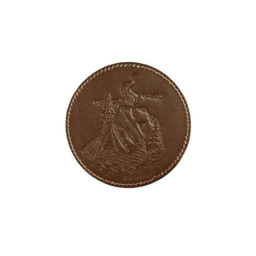 - المادة: جلد مدبوغ نباتيًا (الوجه الأمامي والخلفي للكوستر) / خشب الفلين (وسادة داخلية)