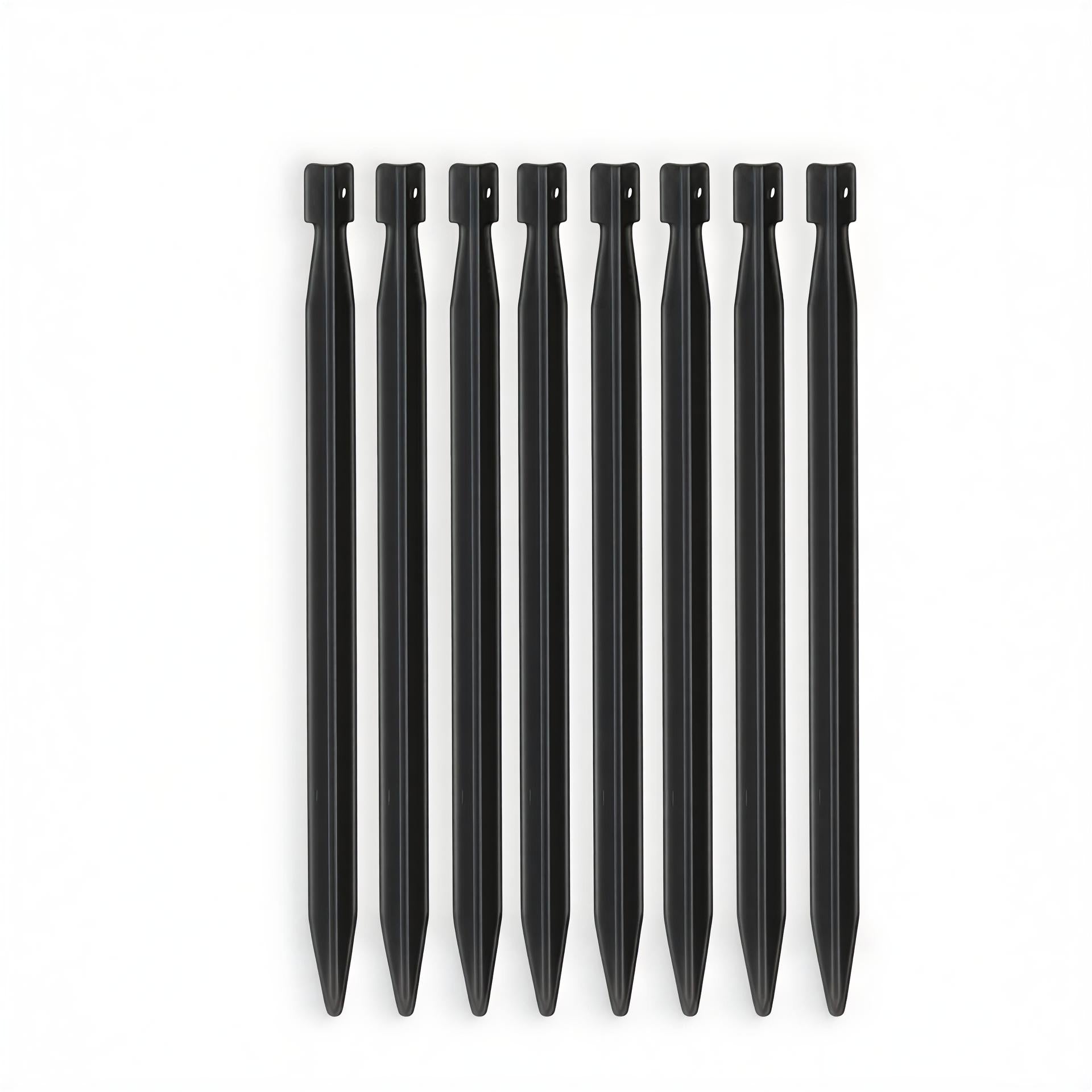 تصميم على شكل حرف V: يعزز جسم الوتد على شكل حرف V الفريد من نوعه قبضته على الأرض، مما يمنع السحب العرضي، حتى في الرياح القوية أو أثناء الظروف الجوية السيئة. وهذا يجعلها مثالية لتأمين الخيام أو القماش المشمع في مجموعة متنوعة من ظروف الأرض.