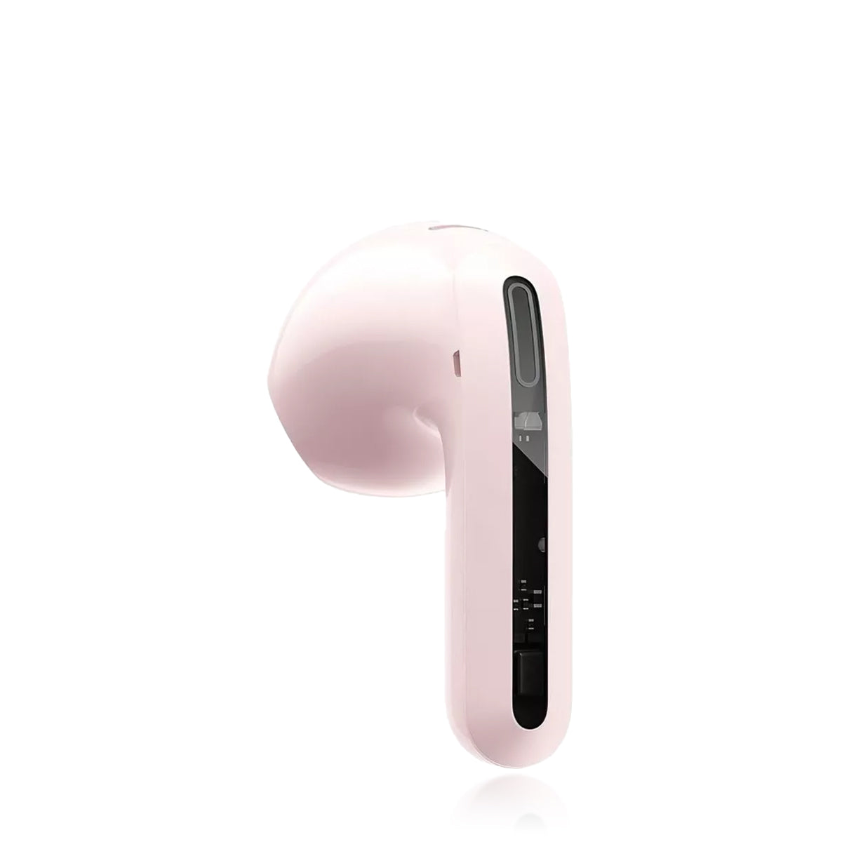 - تتميز السماعة بلمسة نهائية بلون البودرة الشفافة، مما يضفي مظهرًا عصريًا وجذابًا مع تصميم مريح للاستخدام اليومي.