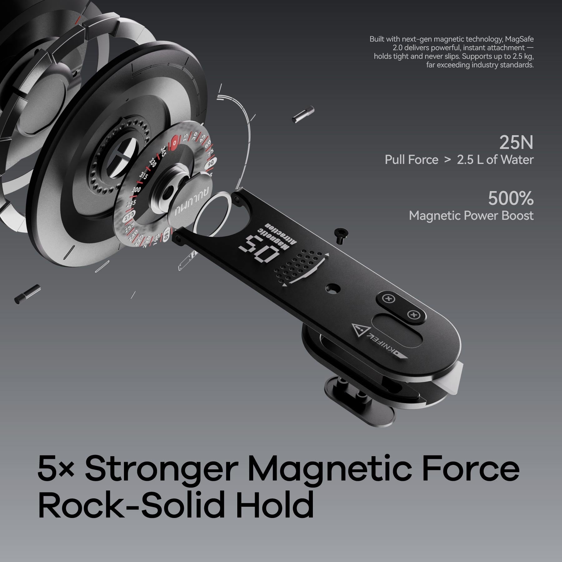 5× stronger magnetic force rock-solid hold, supports up to 2.5 kg, far exceeding industry standards.