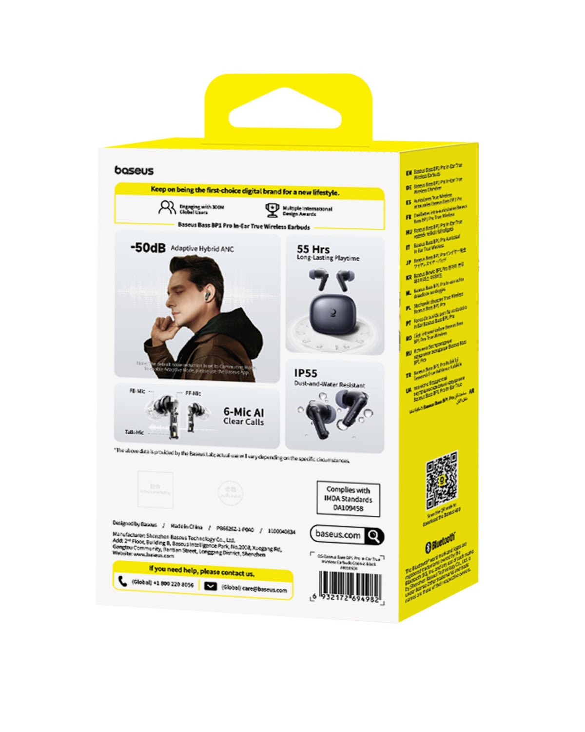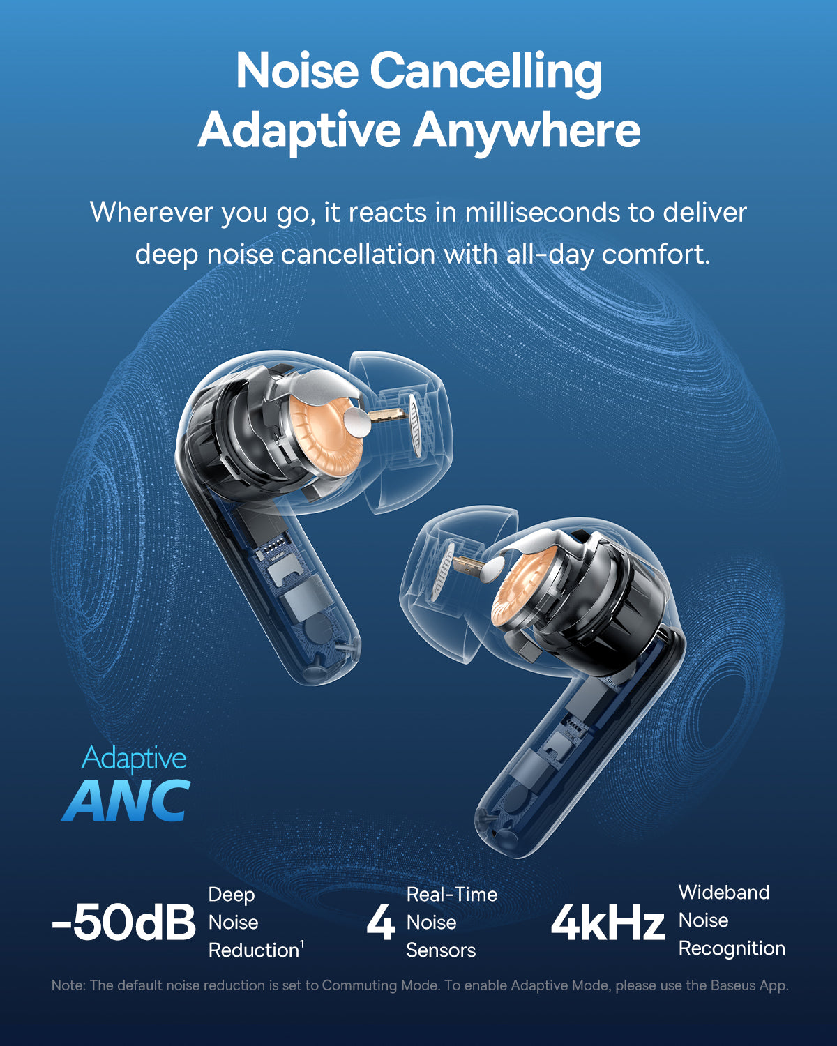 Baseus Bass BP1 Pro In-Ear TWS Earbuds feature -50dB adaptive ANC, 6-mic AI calls, and LDAC for Hi-Res sound. With IP55 Waterproof, 55-hour battery, and volume-adaptive EQ, they blend noise cancellation and audio precision for daily use.