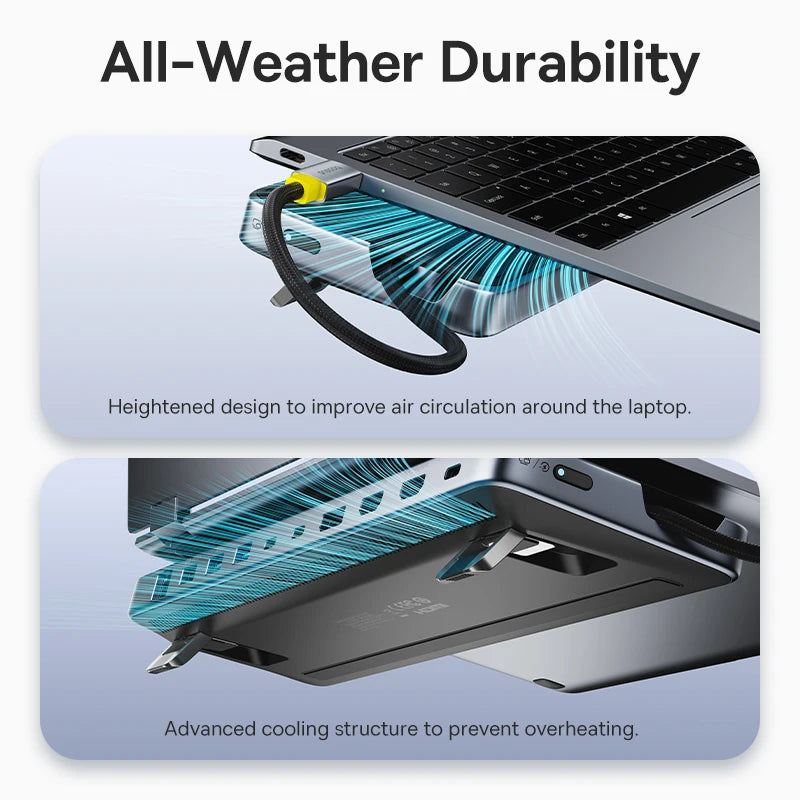 Built-in adjustable laptop stand for ergonomic viewing angles