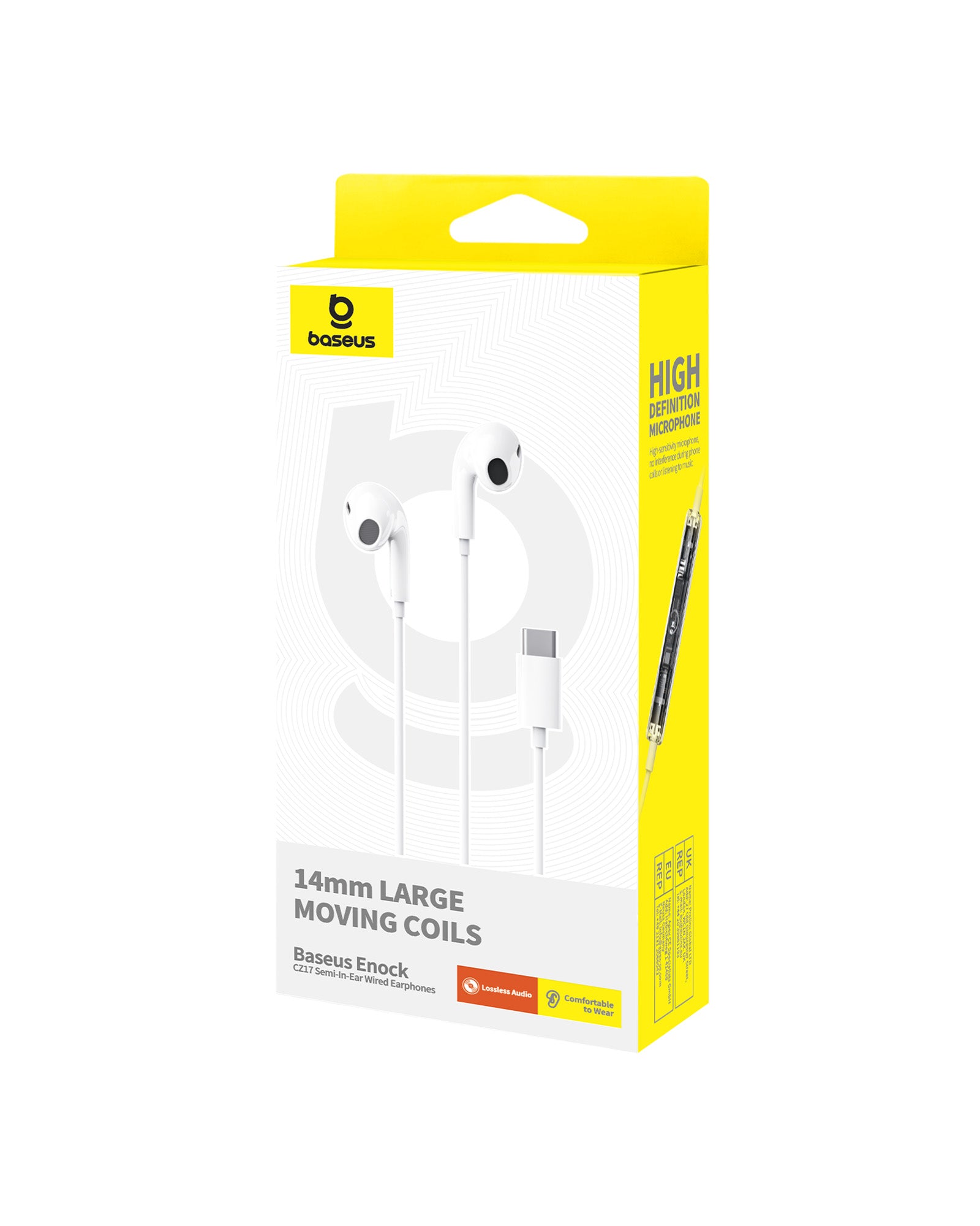 The Baseus Encok CZ17 USB-C Earphones offer a premium audio experience tailored for modern devices. Featuring 14mm drivers and a built-in DAC chip, these earphones deliver high-quality, lossless sound. The ergonomic in-ear design ensures comfort during extended use, while the durable ABS and TPE materials provide long-lasting durability. Equipped with an HD microphone and in-line controls, you can easily manage music playback and calls. These earphones are compatible with a wide range of USB-C devices, making them a versatile choice for everyday use.