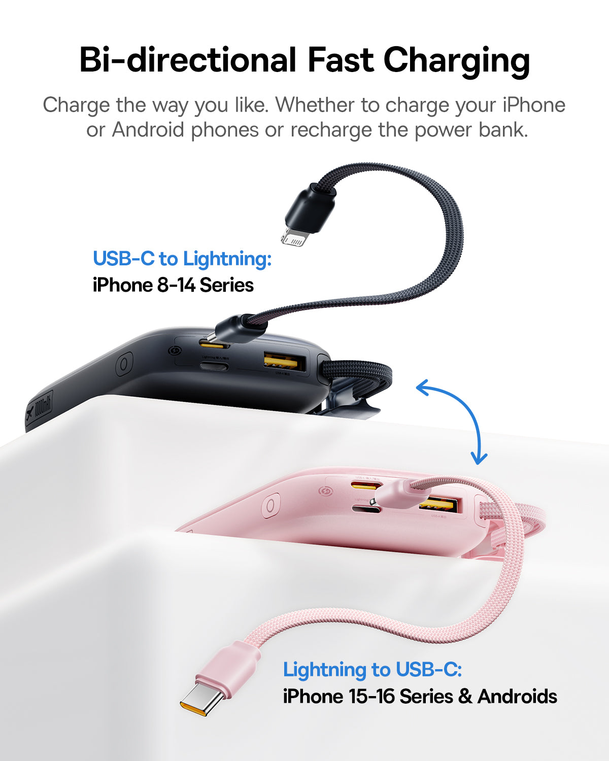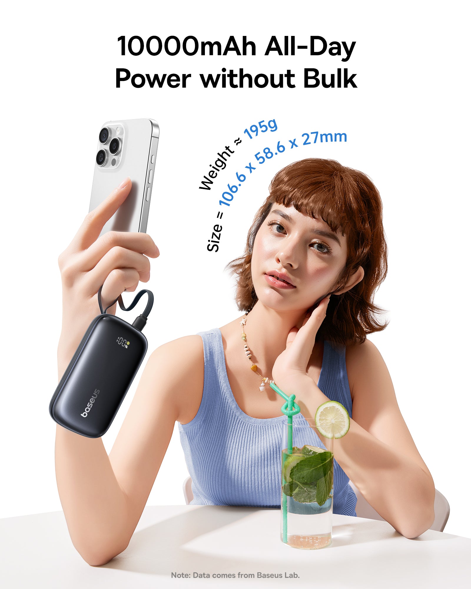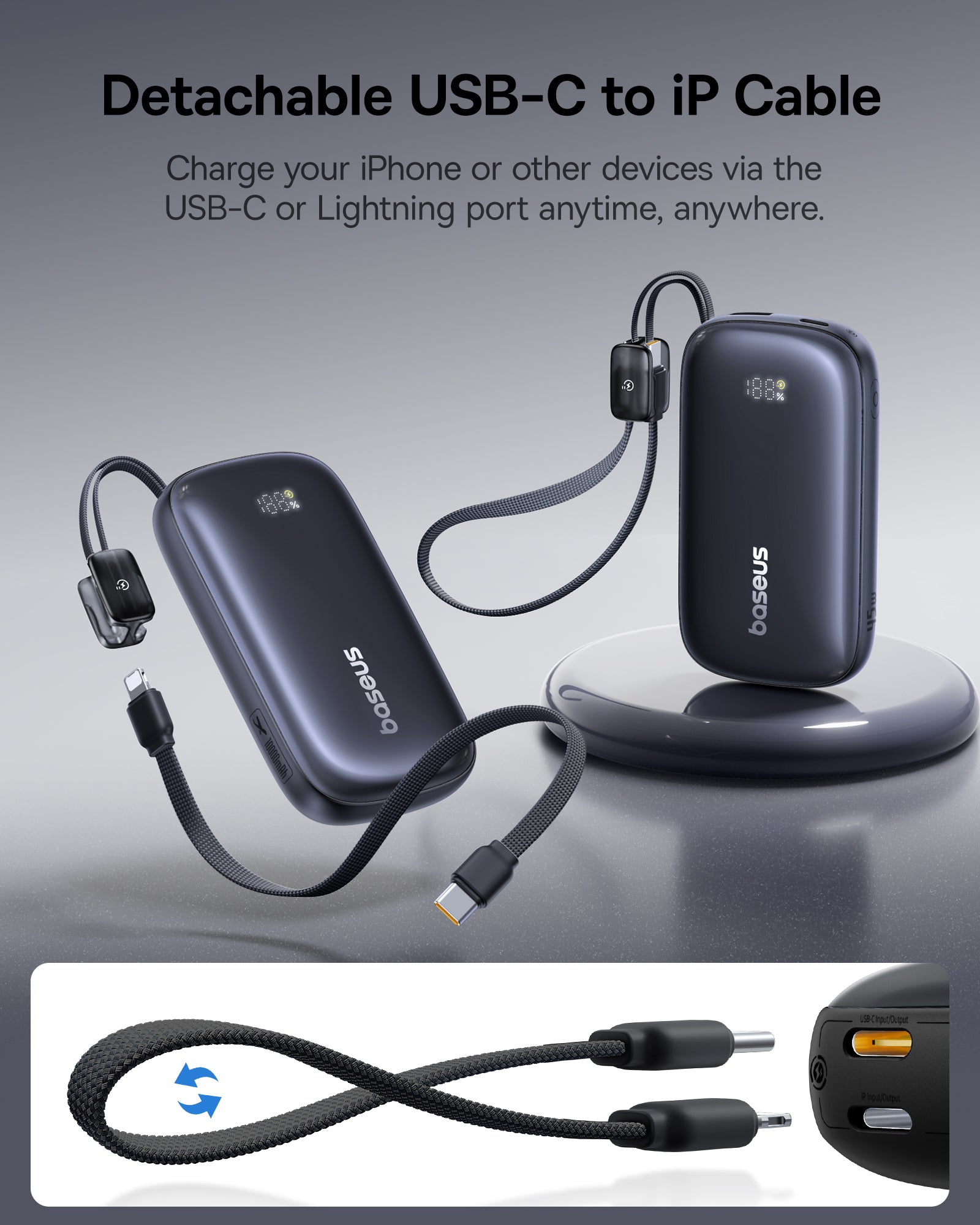 Power up anywhere with the Baseus EnerFill FC21 QPow3 Ultra, a compact 10,000mAh power bank designed for fast, intelligent charging. Delivering up to 45W output, it can quickly charge smartphones, tablets, and even laptops. The integrated detachable cable offers true plug-and-go convenience, while the smart digital display shows real-time battery and output levels. A sleek Cosmic Black finish makes it both powerful and stylish.