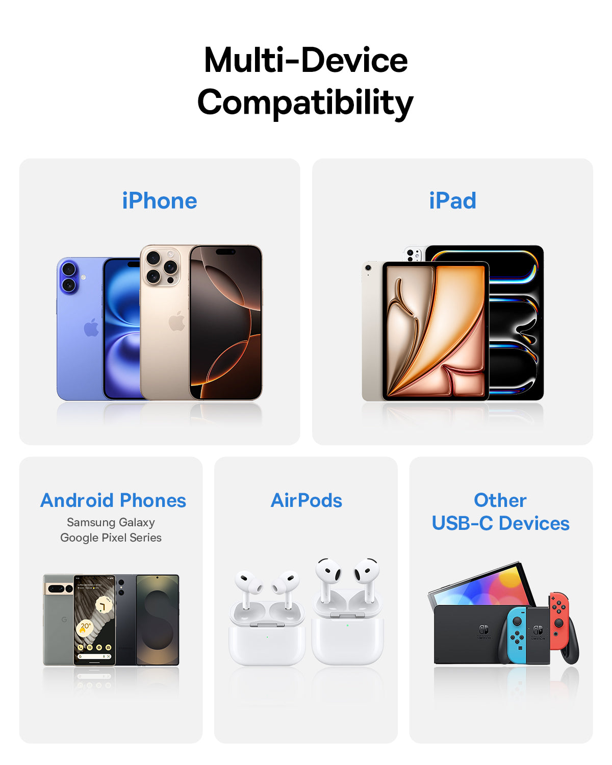 Built-in detachable cable (USB-C or Lightning, depending on model)