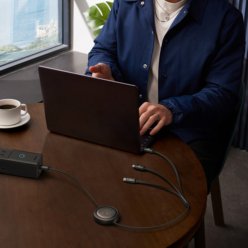 Retractable mechanism allows variable cable lengths and mess-free storage—ideal for travel bags, cars, or desks.