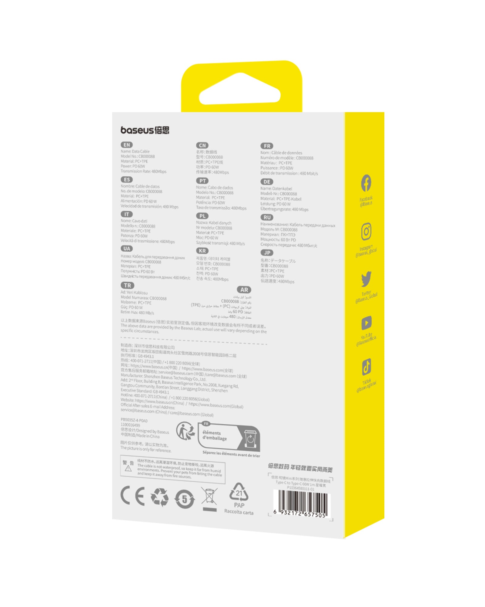 Baseus Free2Pull Mini Charging Cable USB-C to USB-C 60W 1m Cluster Black
