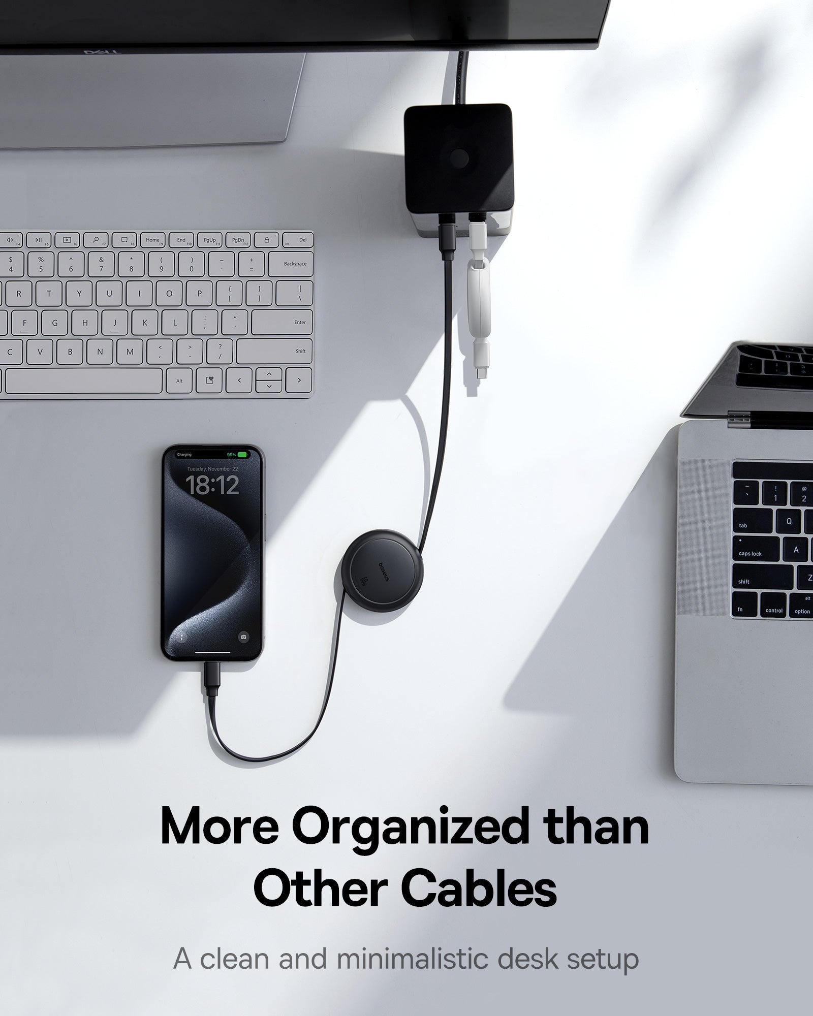 Additionally, this retractable USB-C cable is CarPlay-compatible, providing seamless integration for on-the-go connectivity. Whether you're at home, in the office, or traveling, the Baseus Free2Pull Mini is the perfect retractable USB-C cable for convenience, speed, and reliability.