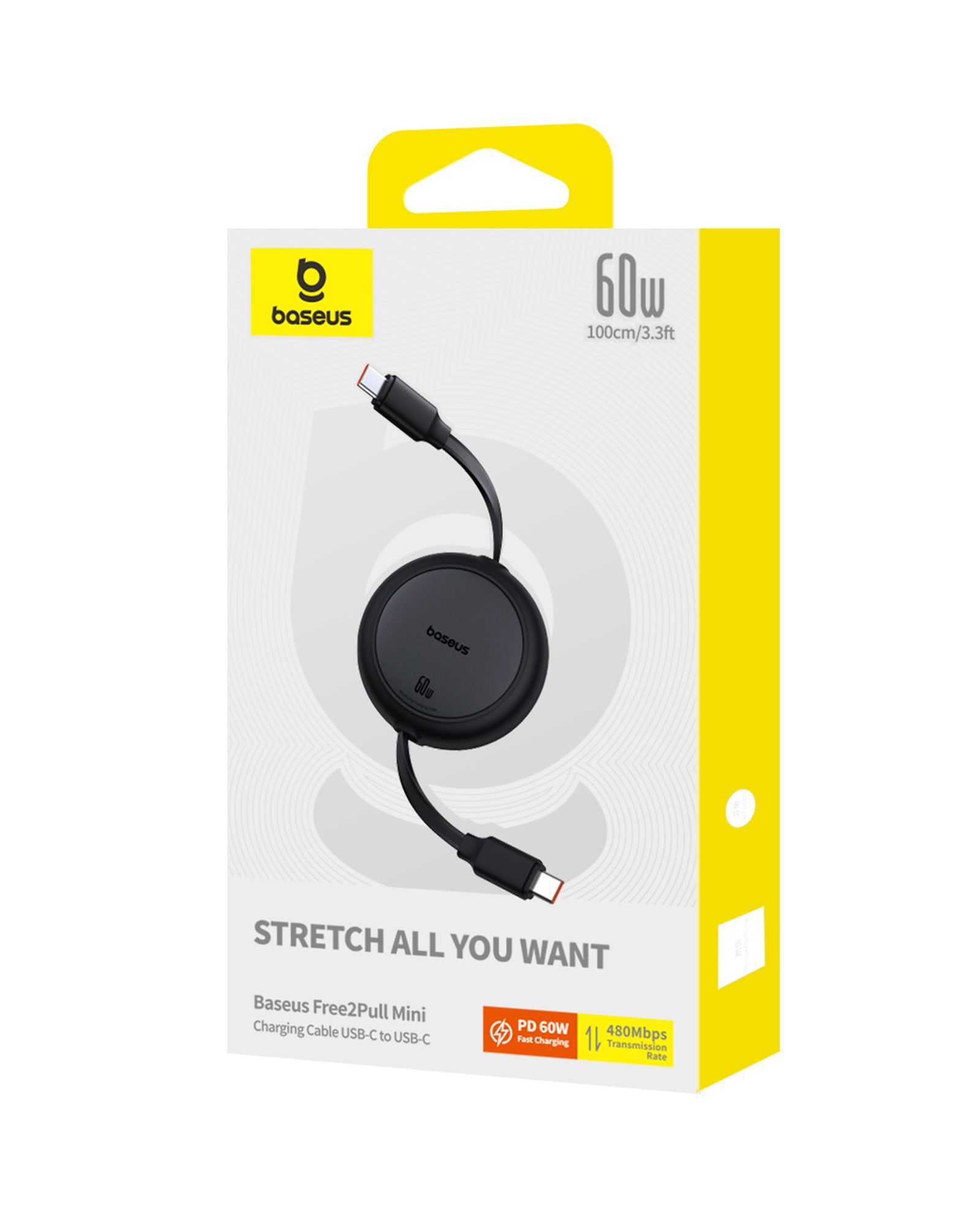 Upgrade your charging and connectivity experience with the Baseus Free2Pull Mini Retractable USB-C to USB-C Cable. Designed for maximum portability, this ultra-thin (15mm) and lightweight (34g) cable fits easily into any bag, making it the perfect companion for travel and daily commuting.