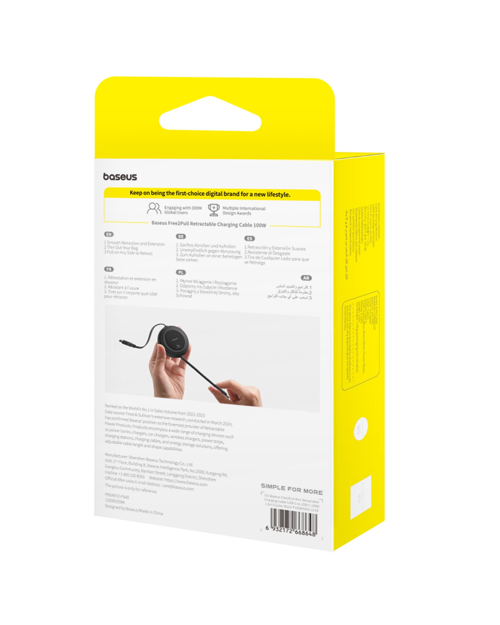 Baseus Free2Draw PD 100W Type-C Retractable Cable can be Stretched all you want. Pull out to use, and let go for storage, smooth without snags; Maximum PD 100W power output can fast charge your phones, tablets and laptops; E-marker Smart Chip, smart recognition of fast charging devices helps them control current and voltage properly and ensures safe charging;480Mbps Transmission Rate, up to 480Mbps transmission rate, equally fast as the charging.