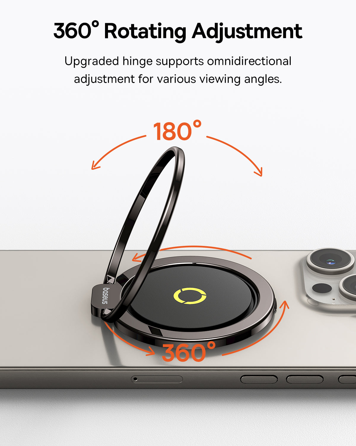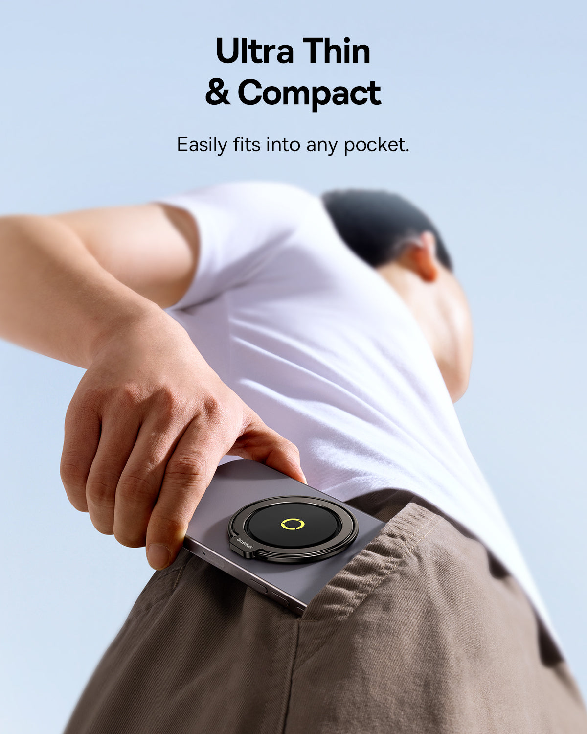 A sleek fusion of portability, function, and style, the Baseus MagPro Series II is a MagSafe‑compatible magnetic ring stand that doubles as a wireless charger (MagSafe Qi‑certified) and a handy grip. Constructed with premium zinc-alloy and powerful magnets, it’s perfect for seamless one-handed use.