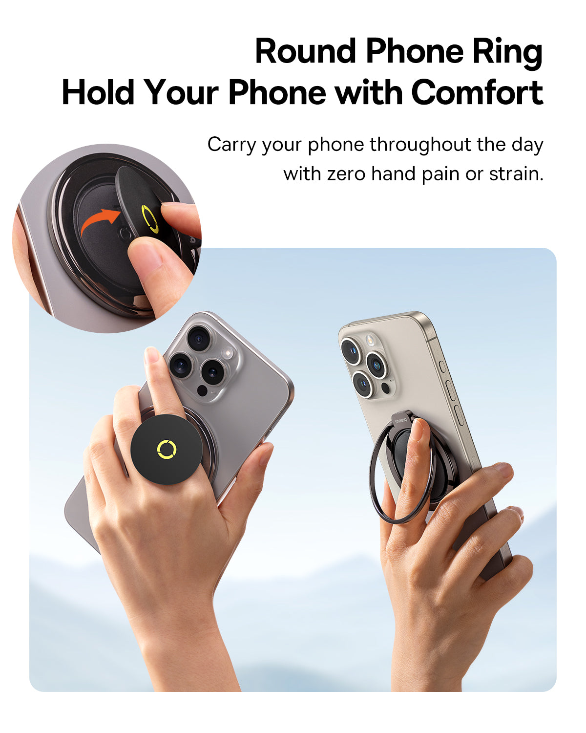 Ideal for MagSafe iPhones, and works with other phones via an optional metal ring sticker (sold separately)