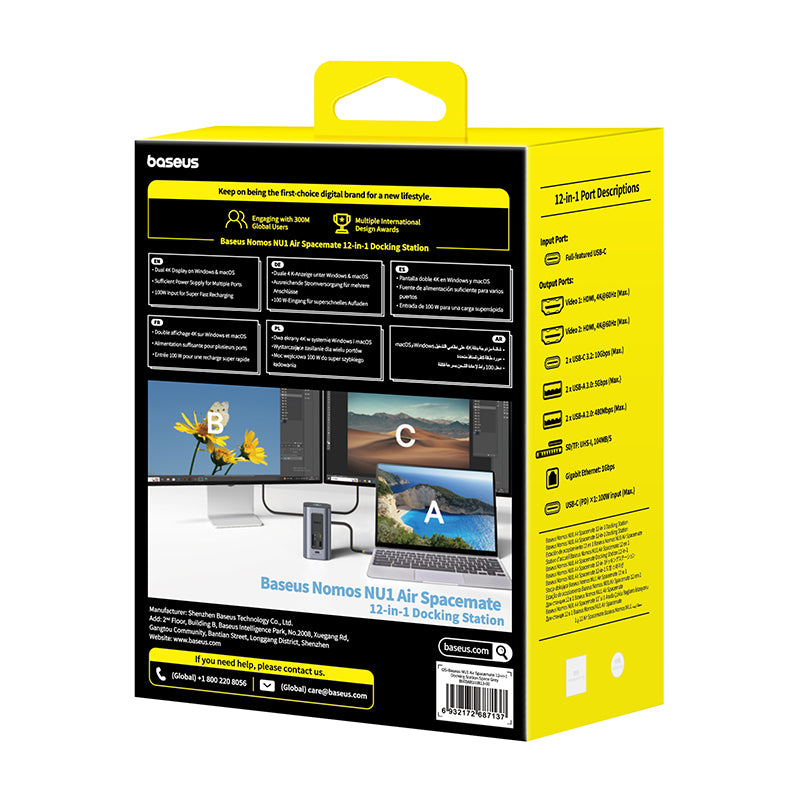 Designed with an aluminum finish and a detachable magnetic base, it offers a professional look and adaptable placement options for any workspace. The Baseus Spacemate Docking Station is fully compatible with macOS, Windows, Android, and Chrome OS, making it the ideal all-in-one solution for professionals and students alike who require seamless multi-device support.