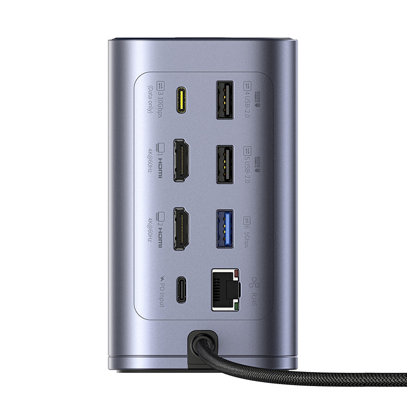 Interface output HDMI 1: 4K/60Hz, HDMI 2: 4K/30Hz, USB 3: 5Gbps, USB 2.0x2: 480Mbps, Type-C: PD100W, RJ45: 1Gbps, 3.5mm audio interface: supports 96kHz 14bit sampling rate