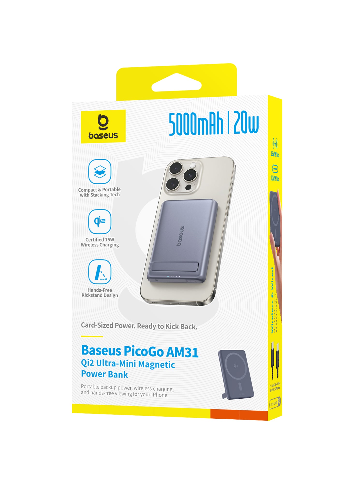 Capacity & Charging Speed: Equipped with a 5000mAh battery, it offers up to 20W wired charging via USB-C and 15W wireless charging using Qi2 technology. This allows for rapid charging of devices like the iPhone 15 Pro, reaching 35% in just 30 minutes—twice as fast as standard 7.5W MagSafe chargers.
