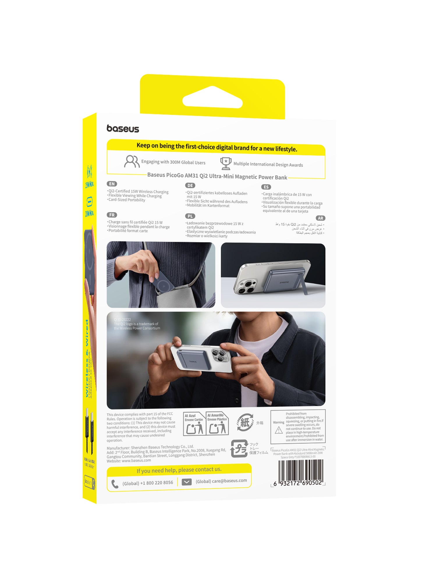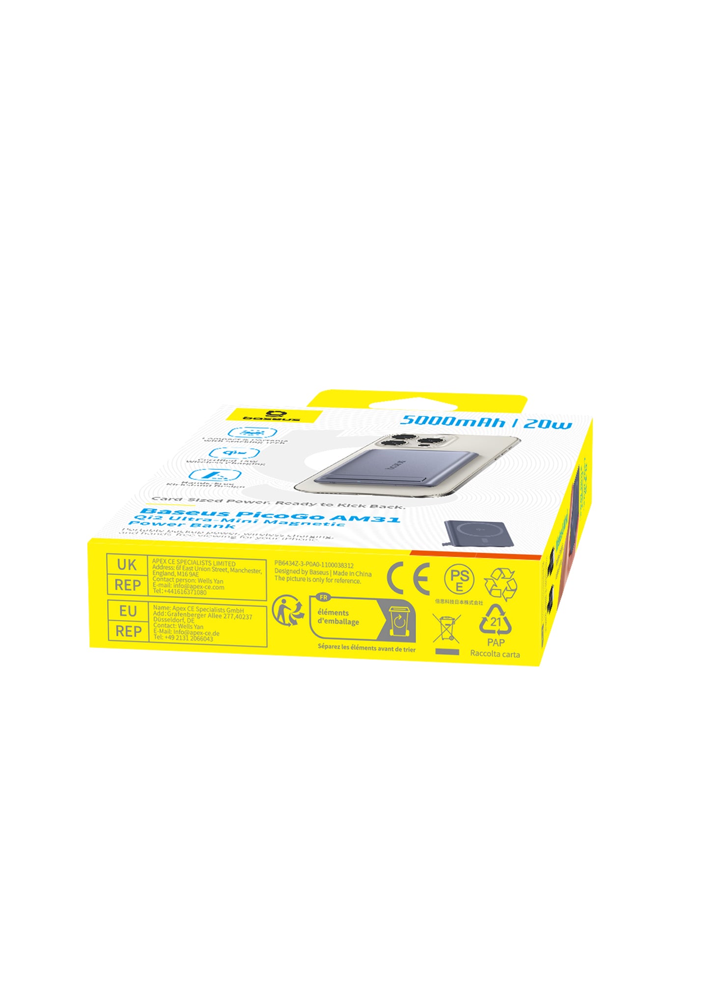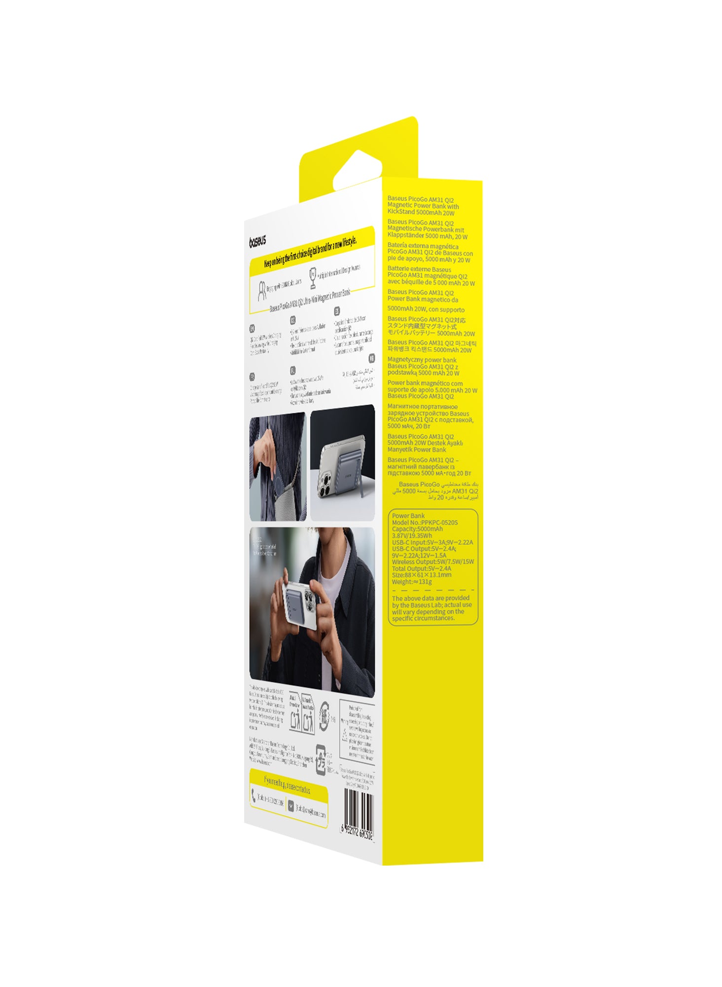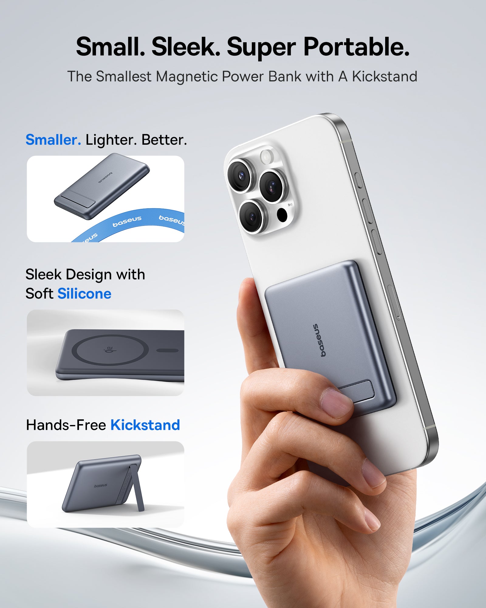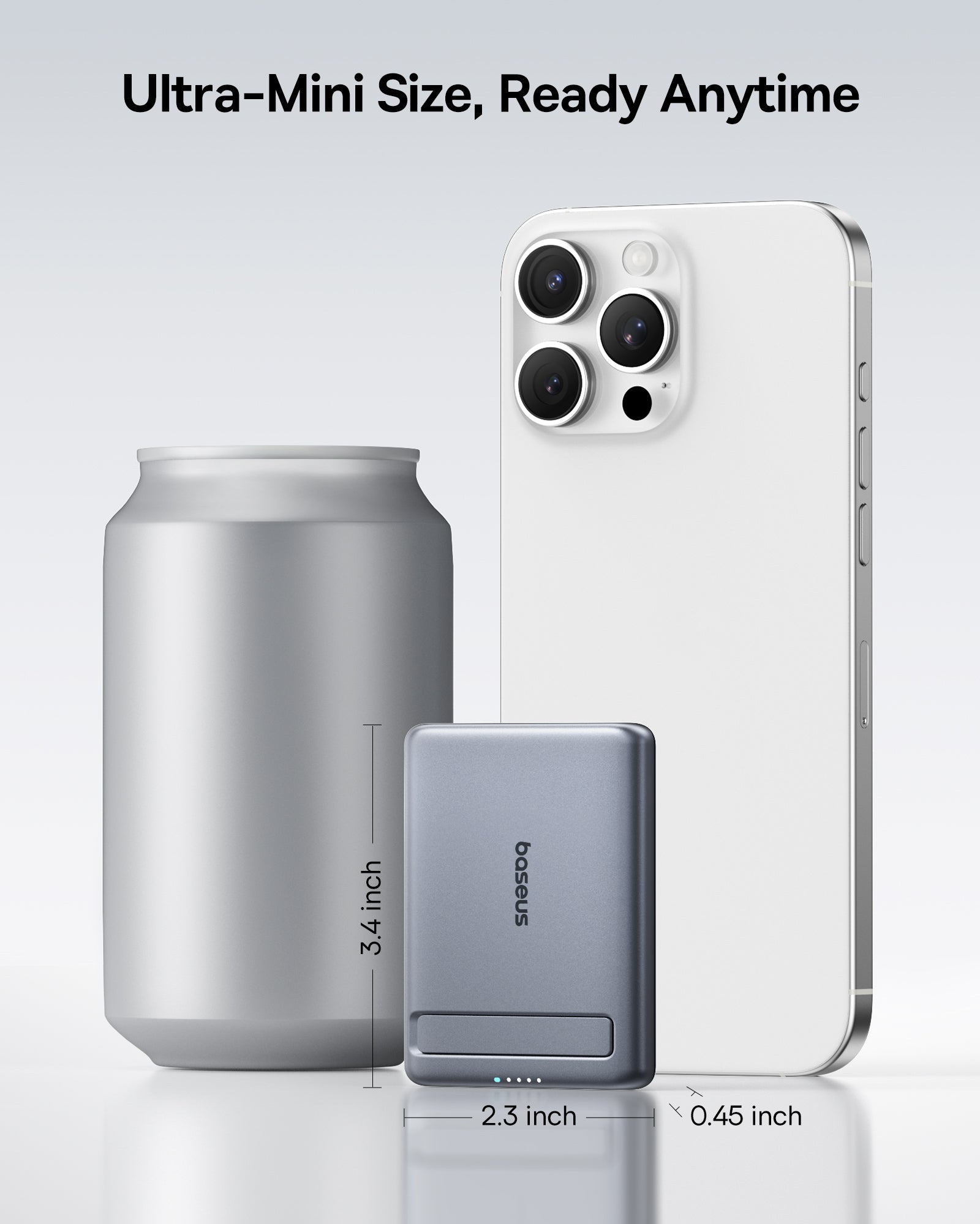 Ultra-Compact Design: Measuring 3.4 x 2.3 x 0.5 inches and weighing only 4.8 oz (approximately 136 grams), it's one of the smallest and lightest magnetic power banks available.