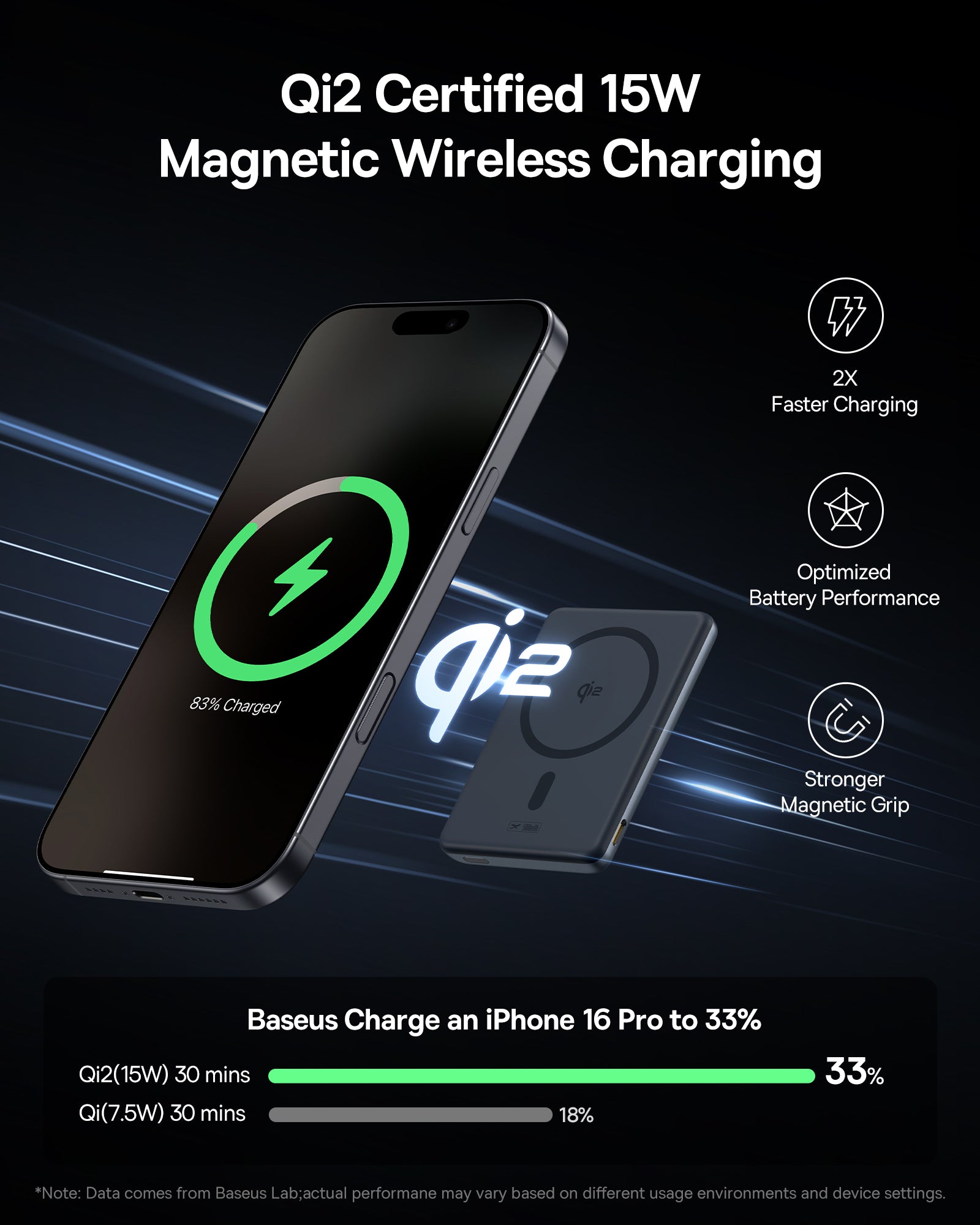 Magnetic Attachment: Features 11N magnets for a secure connection to compatible devices, ensuring stable wireless charging.