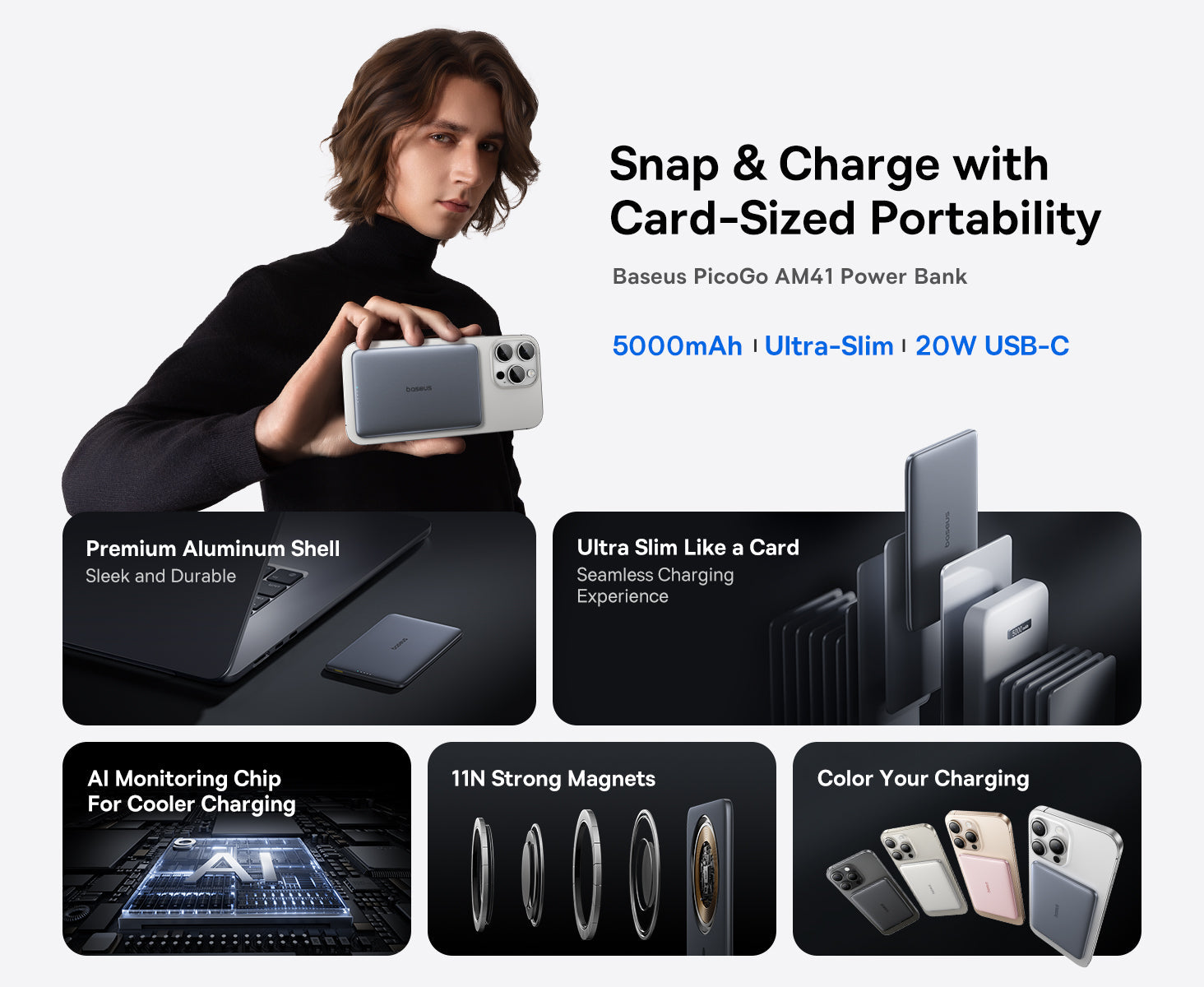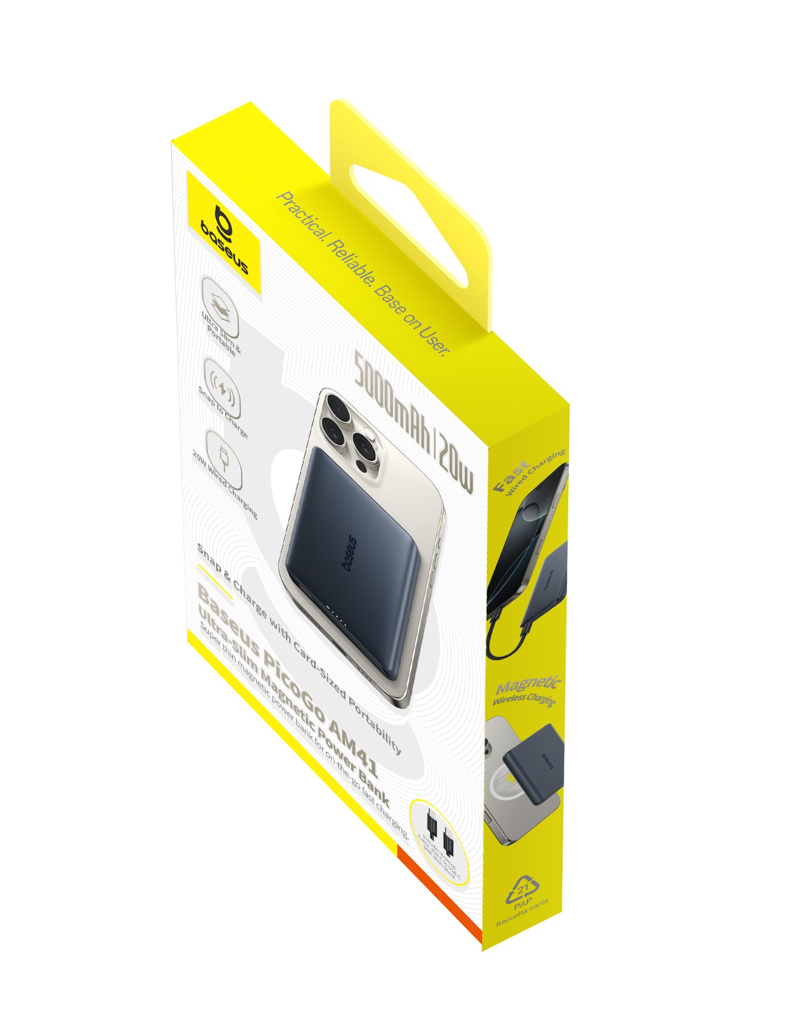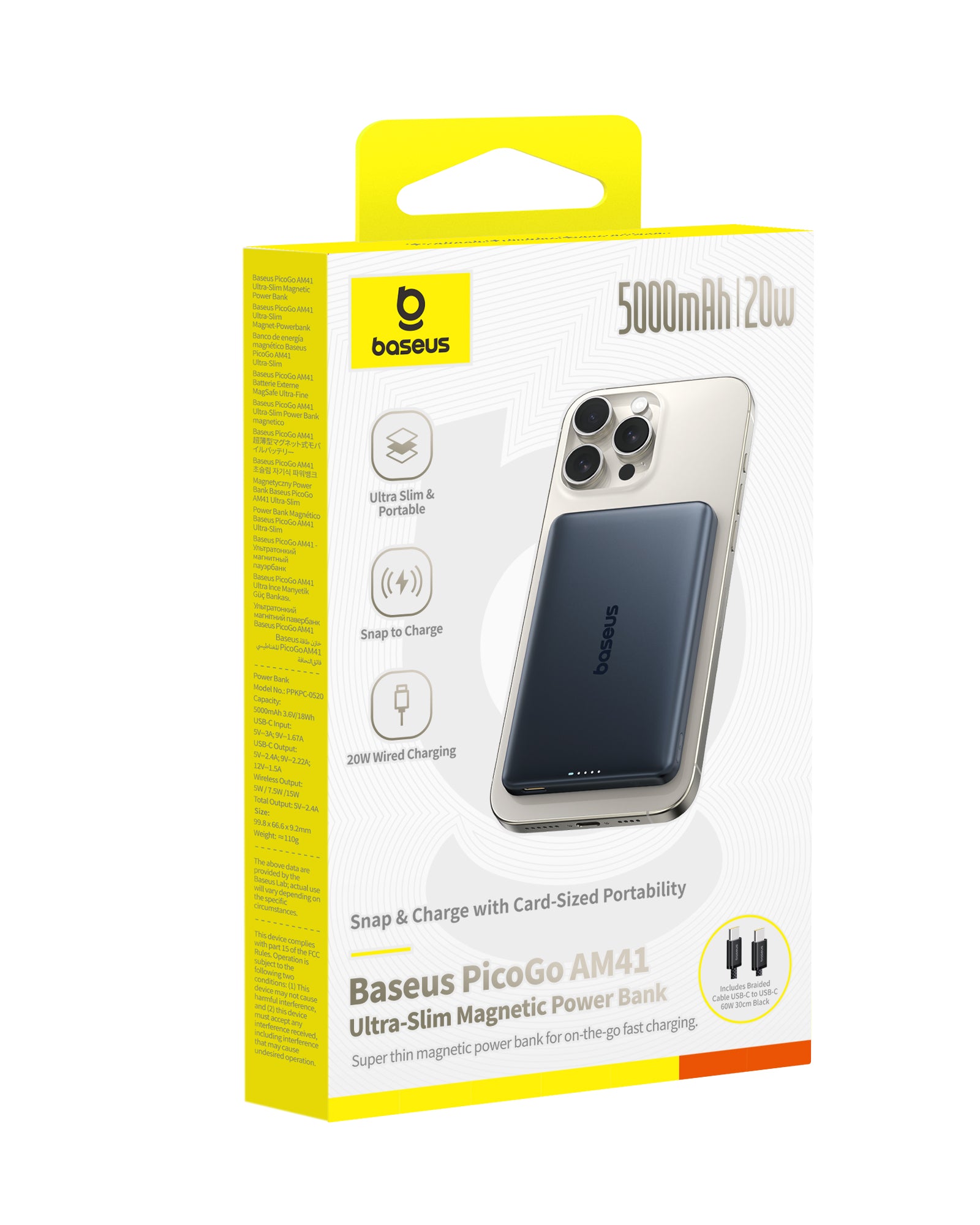 Engineered for the future of portable charging. Baseus magnetic power pank with a razor-thin 0.3in profile and a feather-light 3.8oz design, lighter than your iPhone. The 5000mAh battery slips seamlessly into your pocket, bag, or even wallet, it's ultra-compact build ensures you’ll barely notice it’s there – until you need instant power on the go.