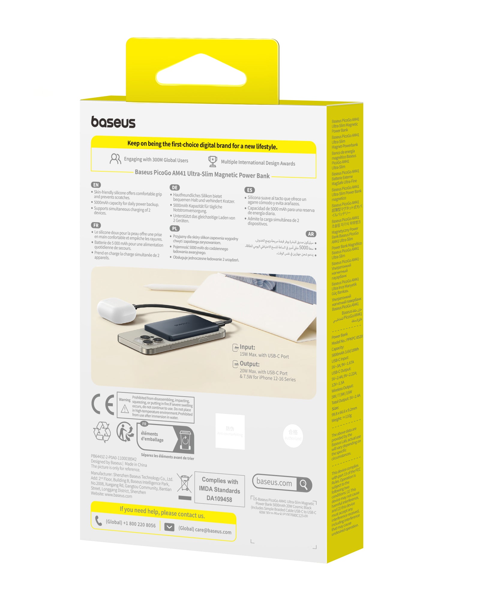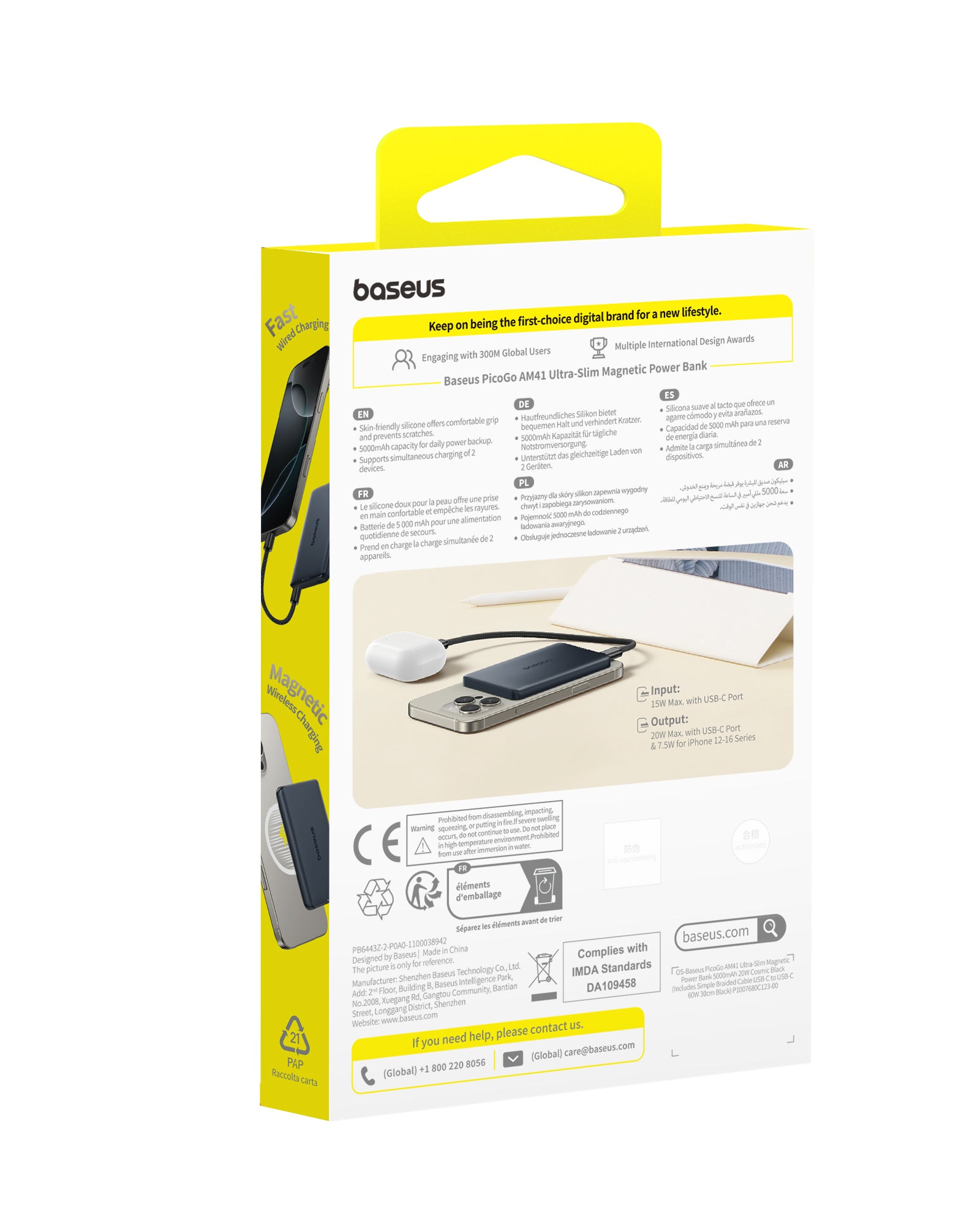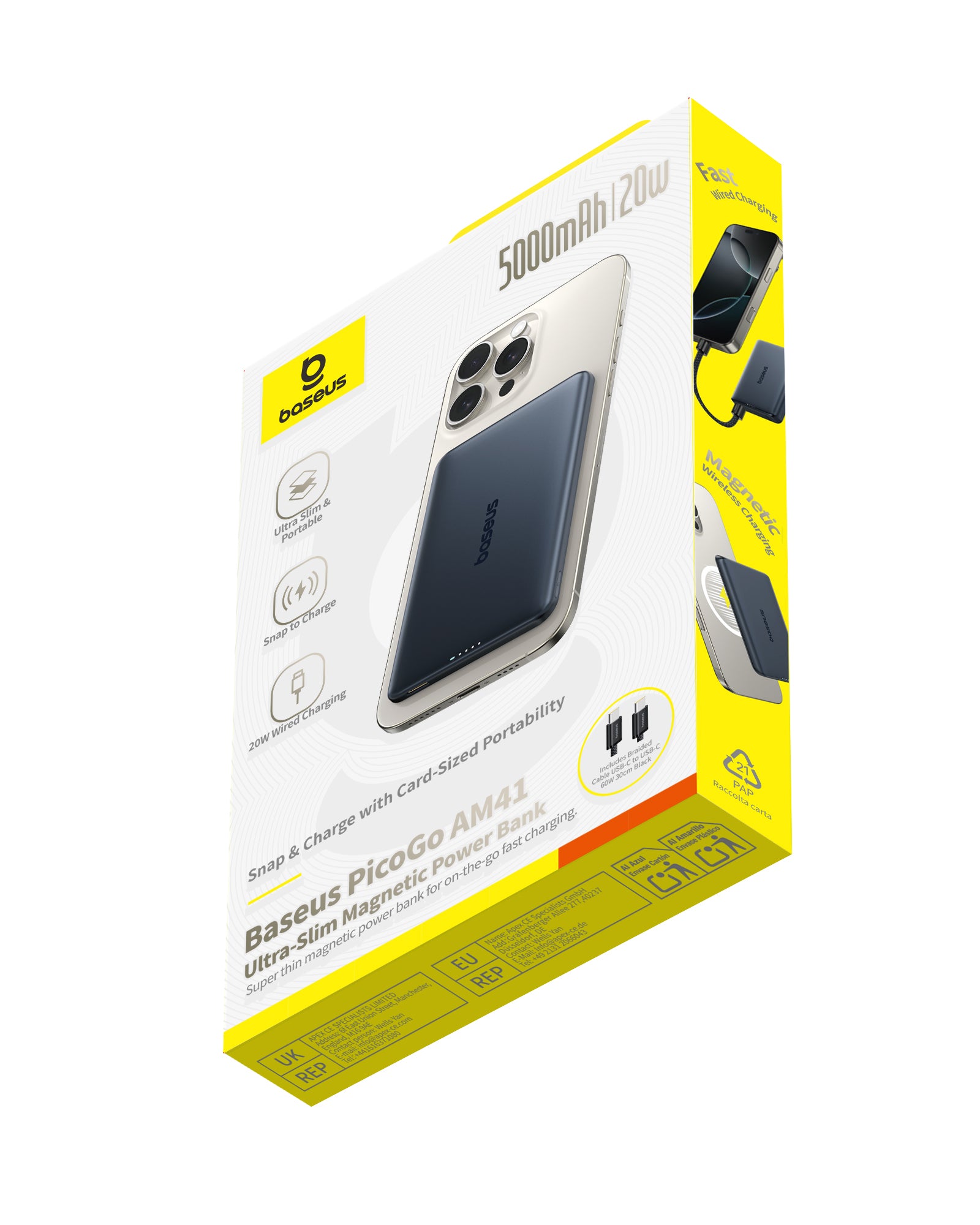 Engineered for the future of portable charging. Baseus magnetic power pank with a razor-thin 0.3in profile and a feather-light 3.8oz design, lighter than your iPhone. The 5000mAh battery slips seamlessly into your pocket, bag, or even wallet, it's ultra-compact build ensures you’ll barely notice it’s there – until you need instant power on the go.