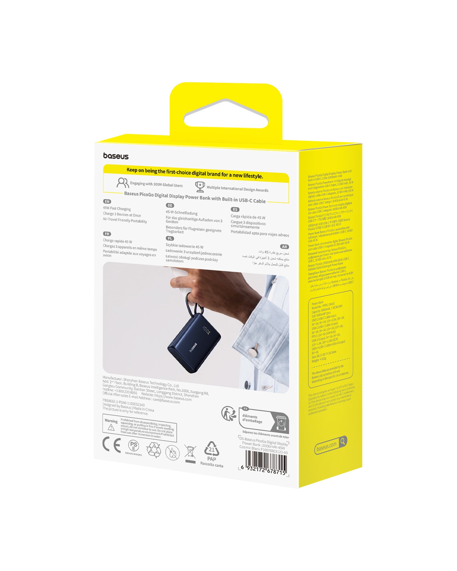 Forgot to bring the charging cable and cannot charge the power bank? Is the cable too long and unsightly? The built-in cable on this Baseus battery bank perfectly solves your troubles. It provides 30W fast recharging and can fully charge the portable charger in about 2 hrs.