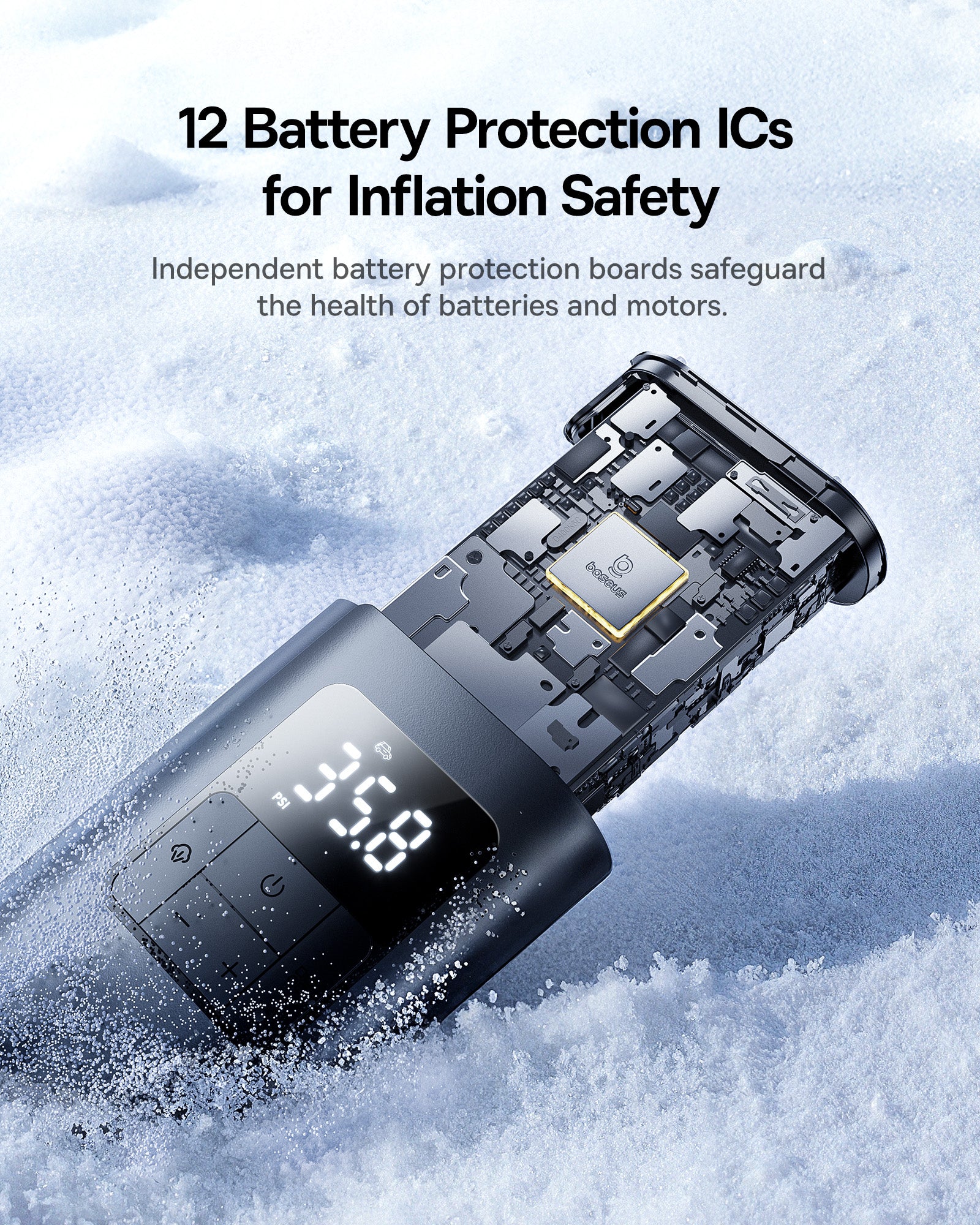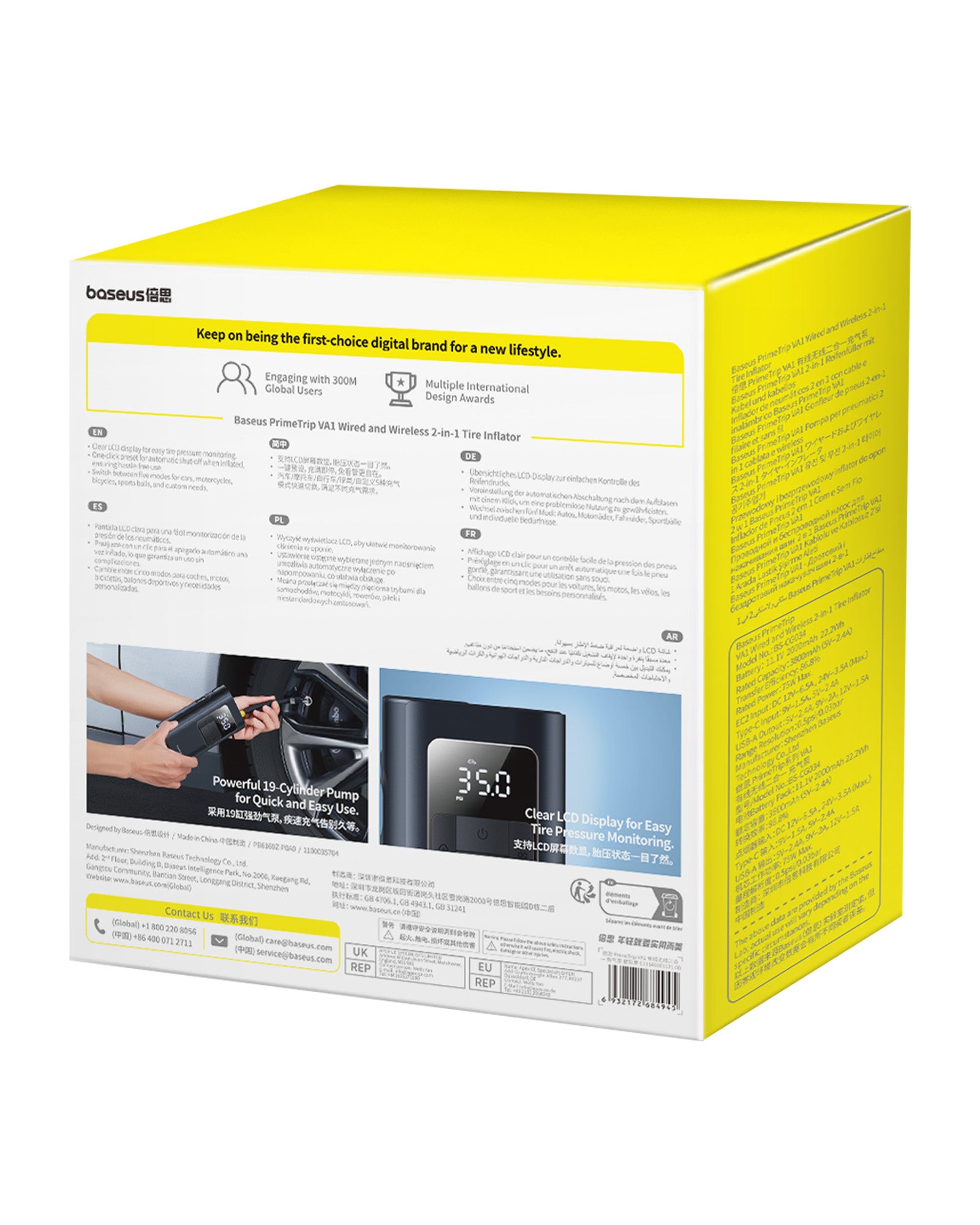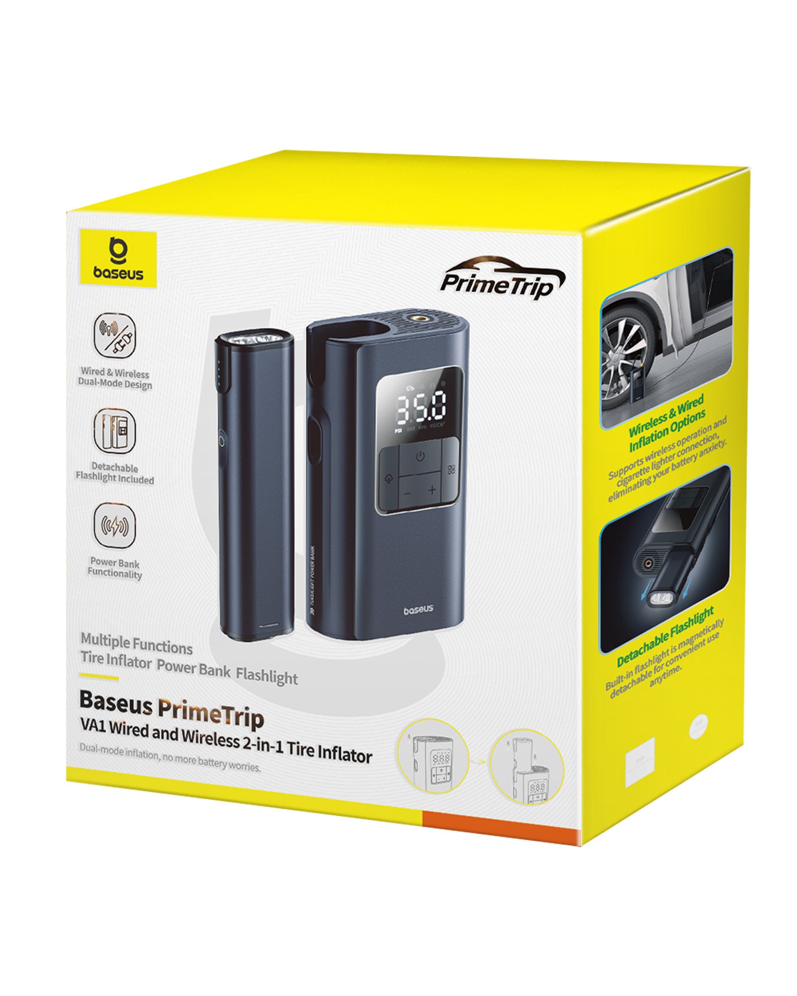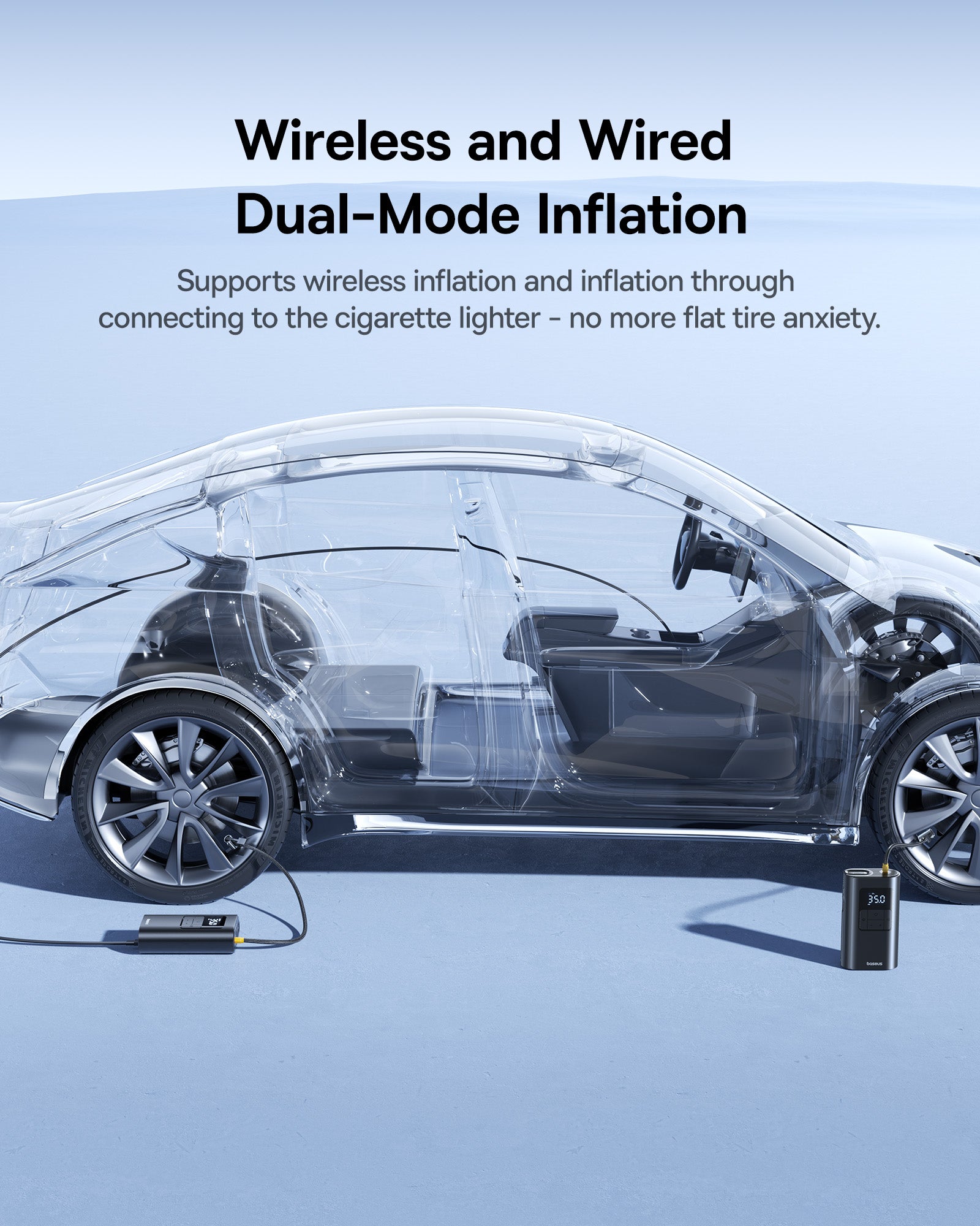 The Baseus PrimeTrip VA1 Wired and Wireless 2-in-1 Tire Inflator in Cosmic Black is a versatile and portable air compressor designed for efficient tire inflation and emergency preparedness. Combining both wired and wireless functionalities, it ensures flexibility and convenience for various inflation needs.