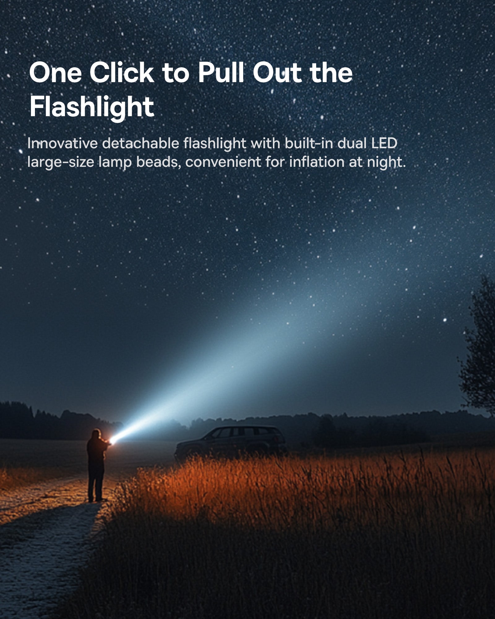 Dual Power Modes: Offers both wired and wireless operation, allowing you to inflate tires using the built-in battery or by connecting to your vehicle’s power source.