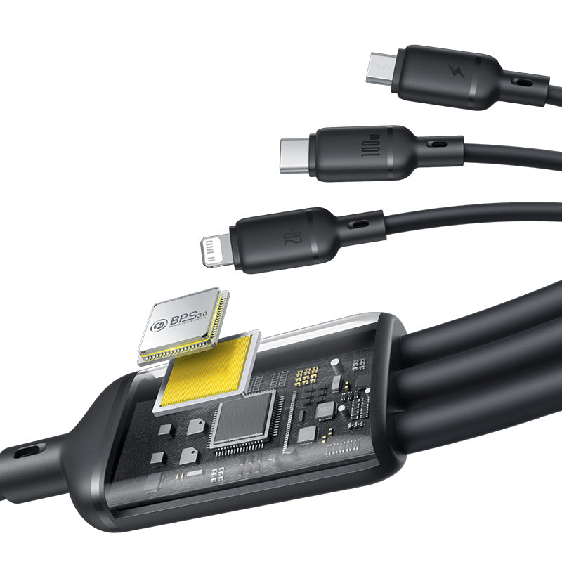 The Baseus Silky One-for-Three Fast Charging Cable is the ultimate solution for charging multiple devices with just one cable. Designed with a USB-C to Micro USB, Lightning, and Type-C connectors, this versatile cable ensures compatibility with a wide range of devices. Whether you need to charge your iPhone, Android device, or USB-C laptop, the Baseus Silky One-for-Three cable can handle it all, offering unparalleled convenience and efficiency.