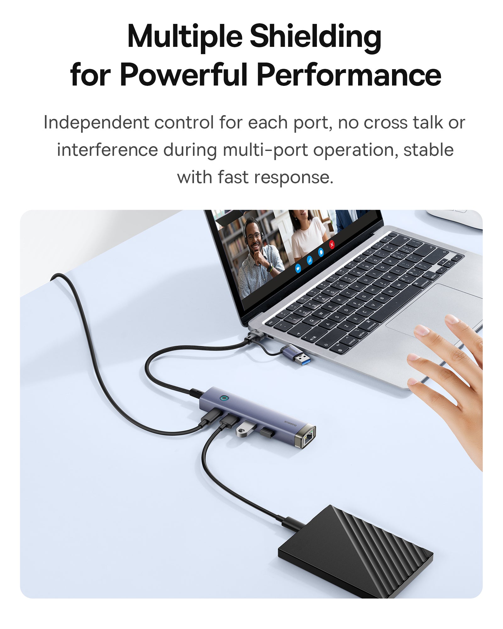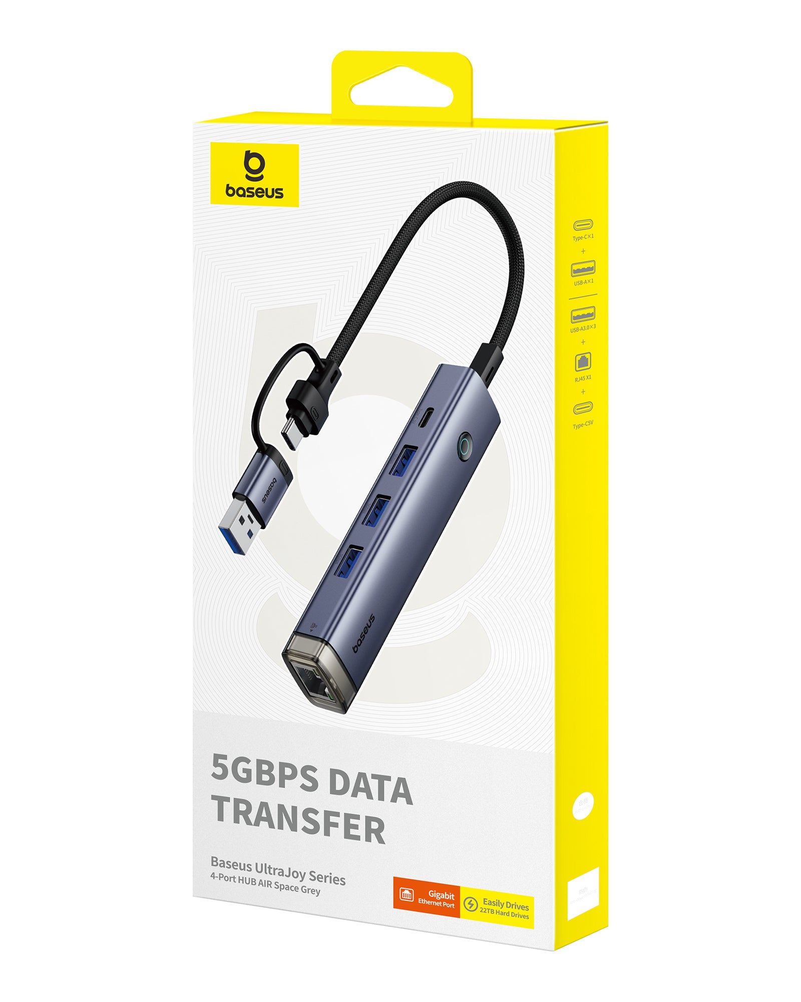 Crafted with a sleek Space Grey finish, the hub is both lightweight and durable, making it a perfect companion for travel and daily use.