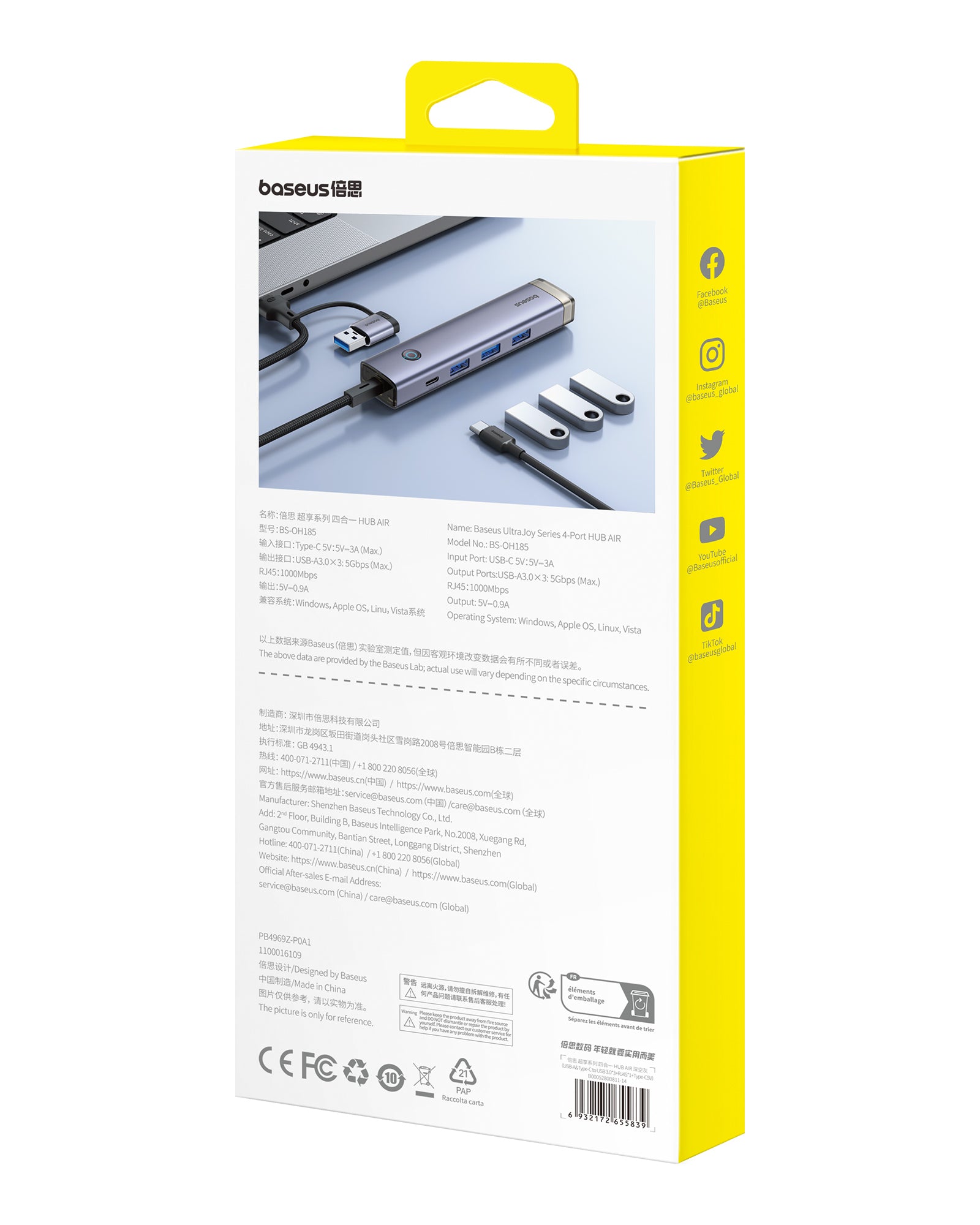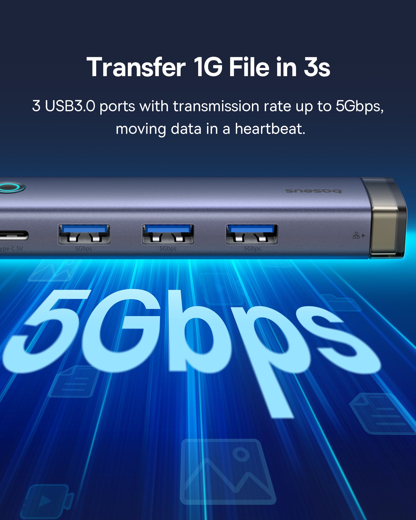 Includes three USB 3.0 ports, a Type-C input port, and an RJ45 Ethernet port for enhanced connectivity and fast internet access.