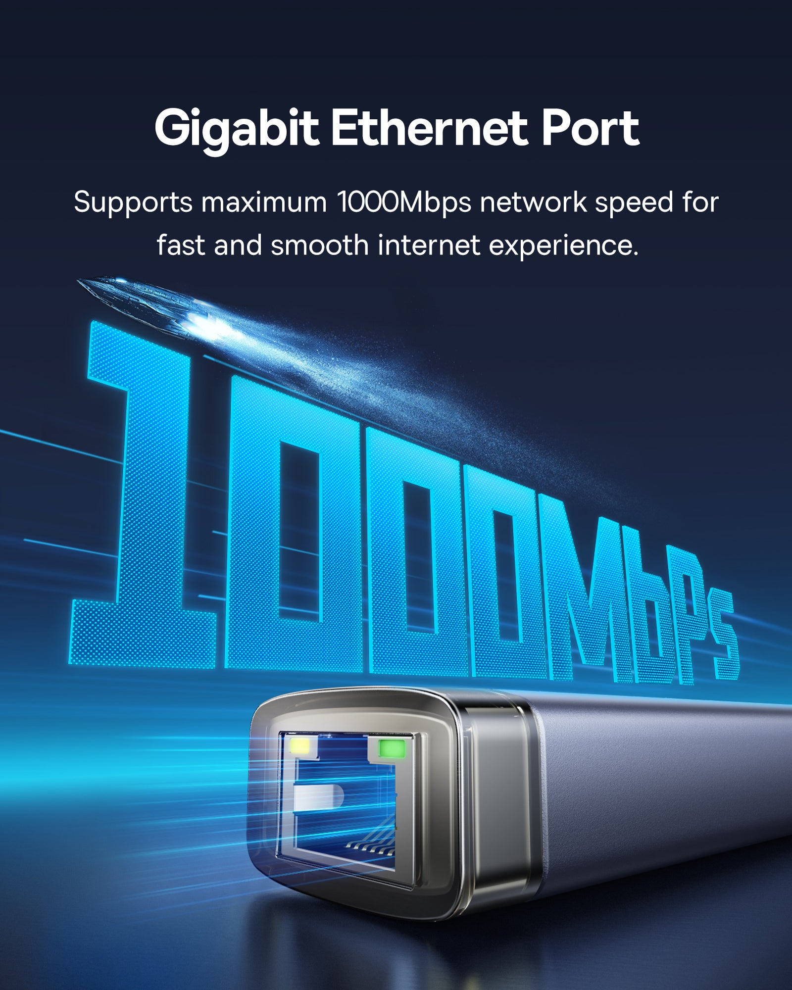 The RJ45 Ethernet port provides a reliable and fast network connection with speeds up to 1000Mbps, ensuring smooth online activities.