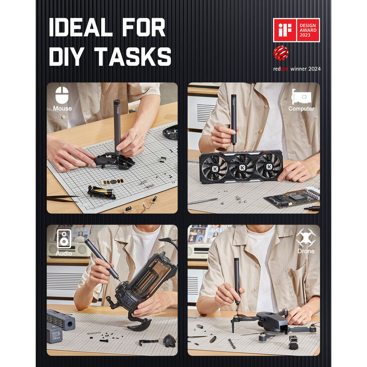 With 50 bits of 9 categories, the Fanttik mini electric screwdriver can prepare you for a variety of repair tasks. The S2 hardened steel guarantees a long and safe serving life. A good quality tool makes good quality work.