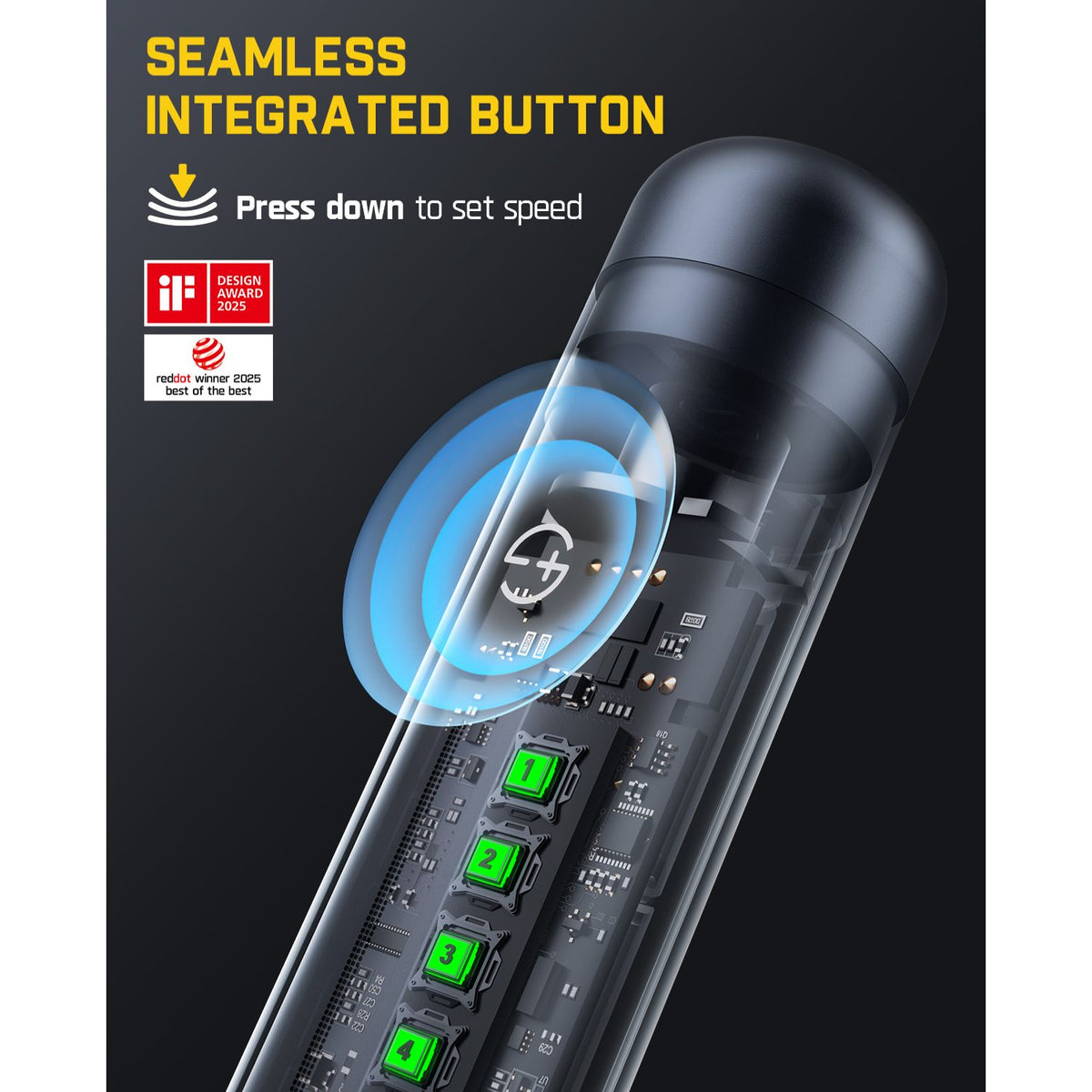 The Fanttik F2 Master features a brushless hollow cup motor that reduces noise by 30% compared to standard motors. Maximum speed: 25,000 RPM, it delivers stronger performance and less heat. 5 adjustable speed settings make it easy to handle various precision tasks