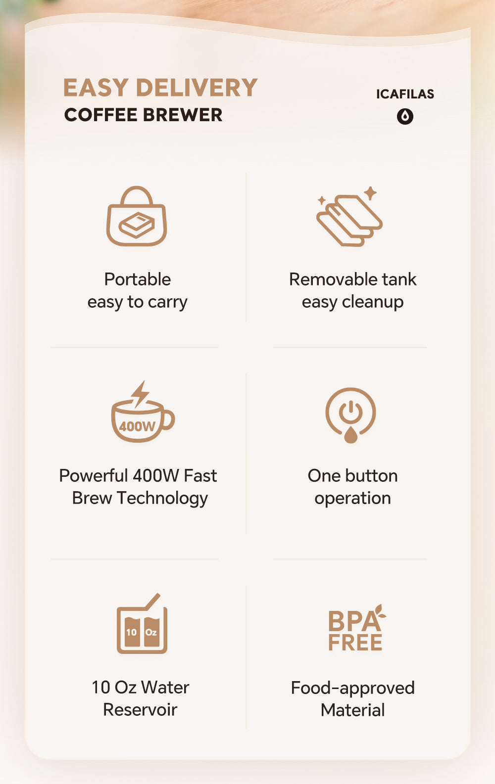 Includes coffee filter cup for a smooth, clean brew
